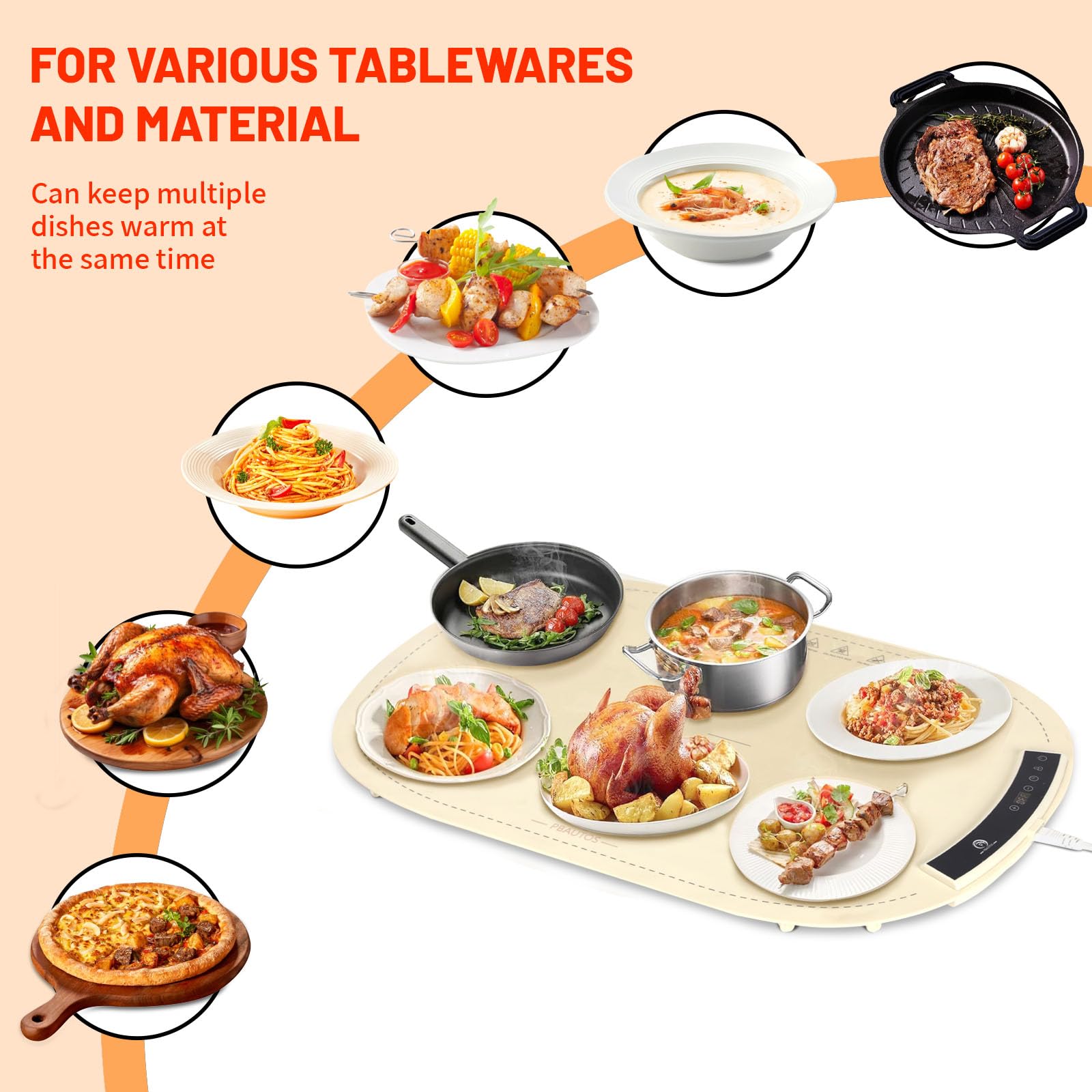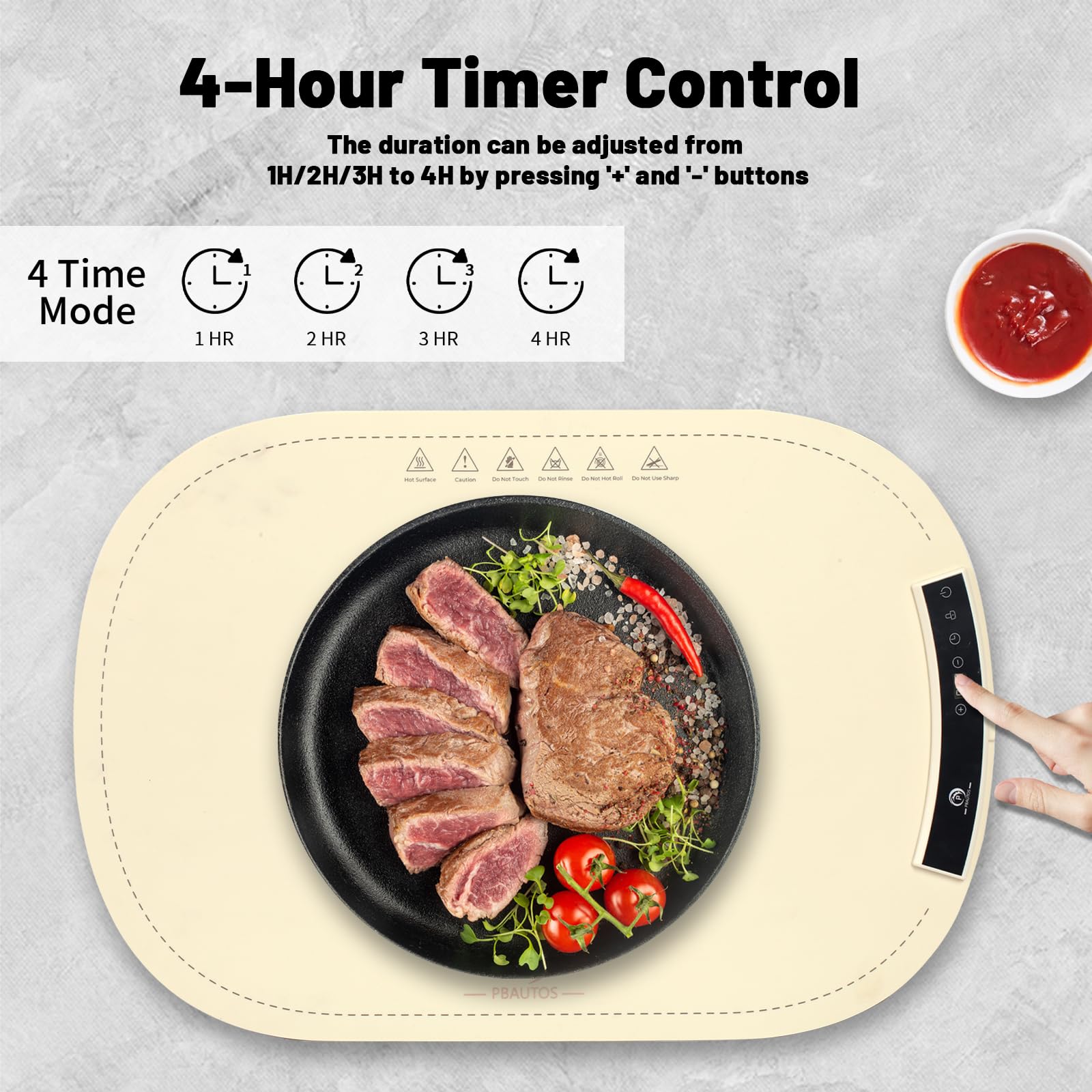 - Enhanced Safety Features: Designed with a child lock button and automatic 2-hour shut-off, this warming mat ensures safe operation around kids and pets. The standby mode saves energy while keeping your food warm