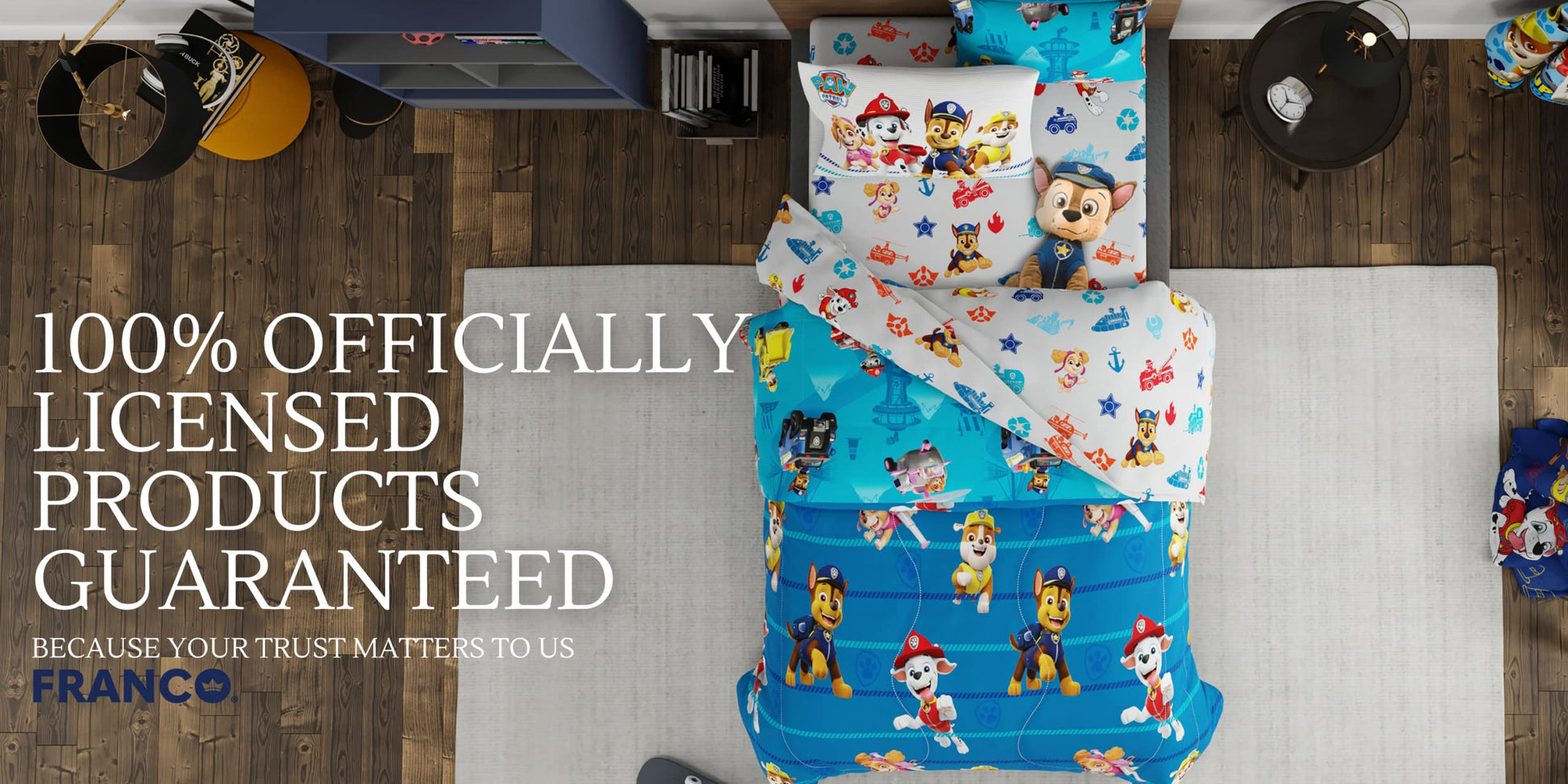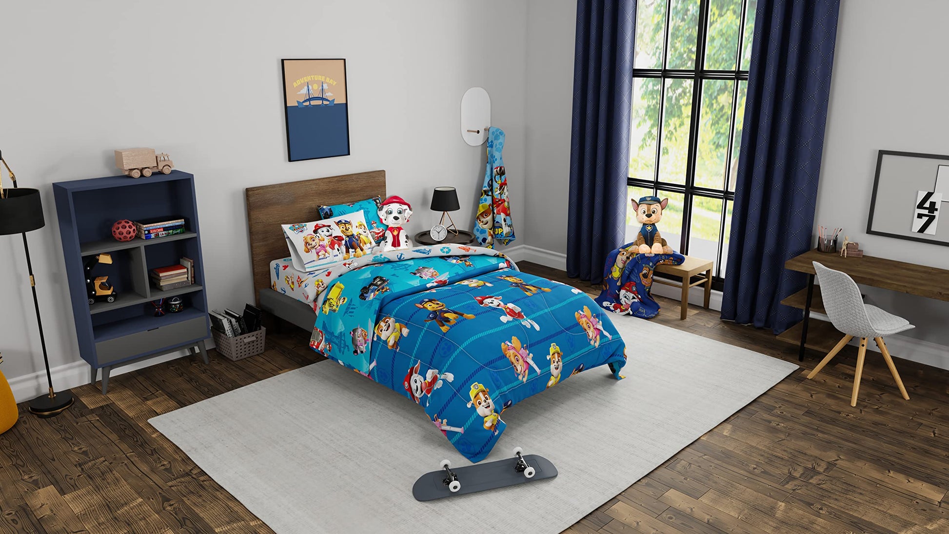 - PAW PATROL DESIGN: Give his bedroom a Paw Patrol makeover with colorful bedding featuring adorable imagery from the hit Nickelodeon series. Marshall, Chase, Skye and Rubble are ready to "Rescue Away" on this high-quality coordinated bedding set. The bold and energetic style of everyone's favorite rescue pups comes through in vibrant artwork. Fun pops of primary colors stand out against versatile shades of blue and grey.