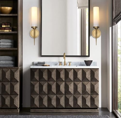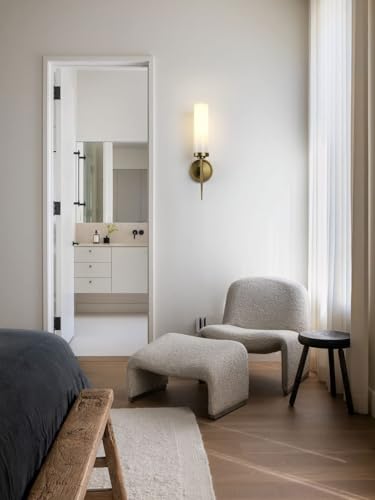 PERMO Vintage Wall Sconce Antique Single Sconces Lighting Fixture with 2.8" Cylindrical Shade Milk Glass Sconces for Bathroom Living Room