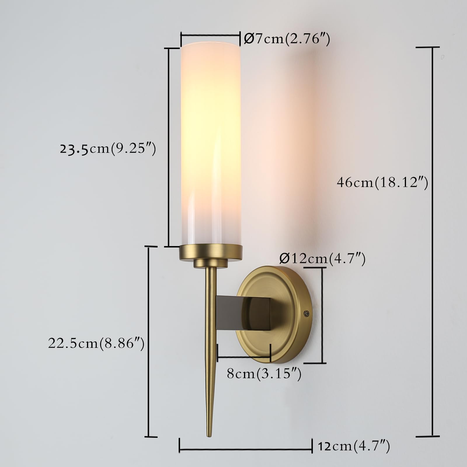 - [Basic Product Demension] Glass wall sconce is 10 inches in width and 18.12 inches in height. In addition, the canopy of the mount plate is 4.72 inches, and can be cuvred to US general octagonal, round or square junction/ electrical box. If you have any question about size before purchasing, please contact us at any your available time.