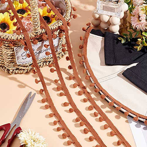 PH PandaHall 20 Yards Pom Poms Balls Fringe Trim, 24mm Trim Fringe Brown Sewing Ribbon Crafts Pompoms Tassel Lace for Sewing Pillow Clothing DIY Crafts Party Home Decoration, 8mm Balls
