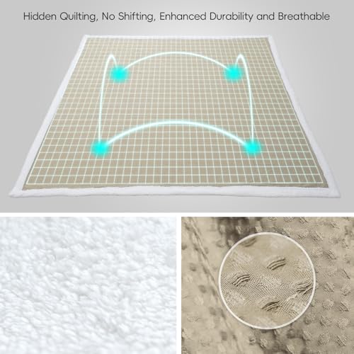 PHF Waffle Sherpa Blanket Queen Size, 90x90 Inches Luxury Plush Flannel Fleece Blanket for Winter, No Shed No Pilling, Cozy Soft & Reversible Waffle Weave Bedding for Home Decor, Khaki