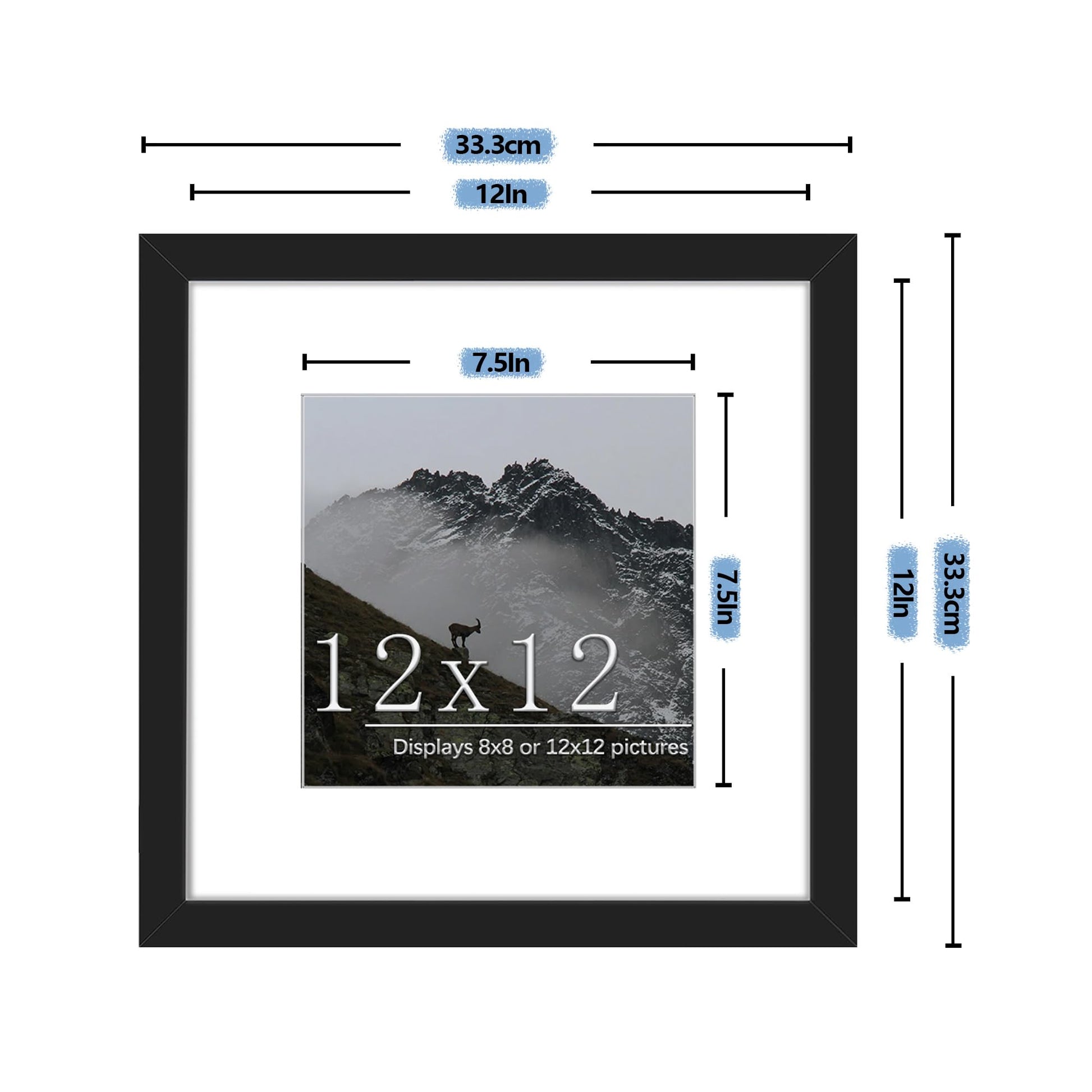 - 【Versatile Size】: These frames measure 12x12 inches, providing the option to use them as a 8x8 frame with the included mat or without, offering flexible display choices for your photos or posters. Actual mat opening is 7.5x7.5 inches.