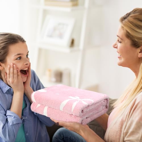 - Ideal Gift Choice: pink bow blanket for girls, looking for a thoughtful gift for the special girls in your life? The pink bow blanket for girls is a ideal choice; Ideal for birthdays or spontaneous surprises, this blanket caters to those who appreciate a feminine aesthetic, making it a stylish and practical present
