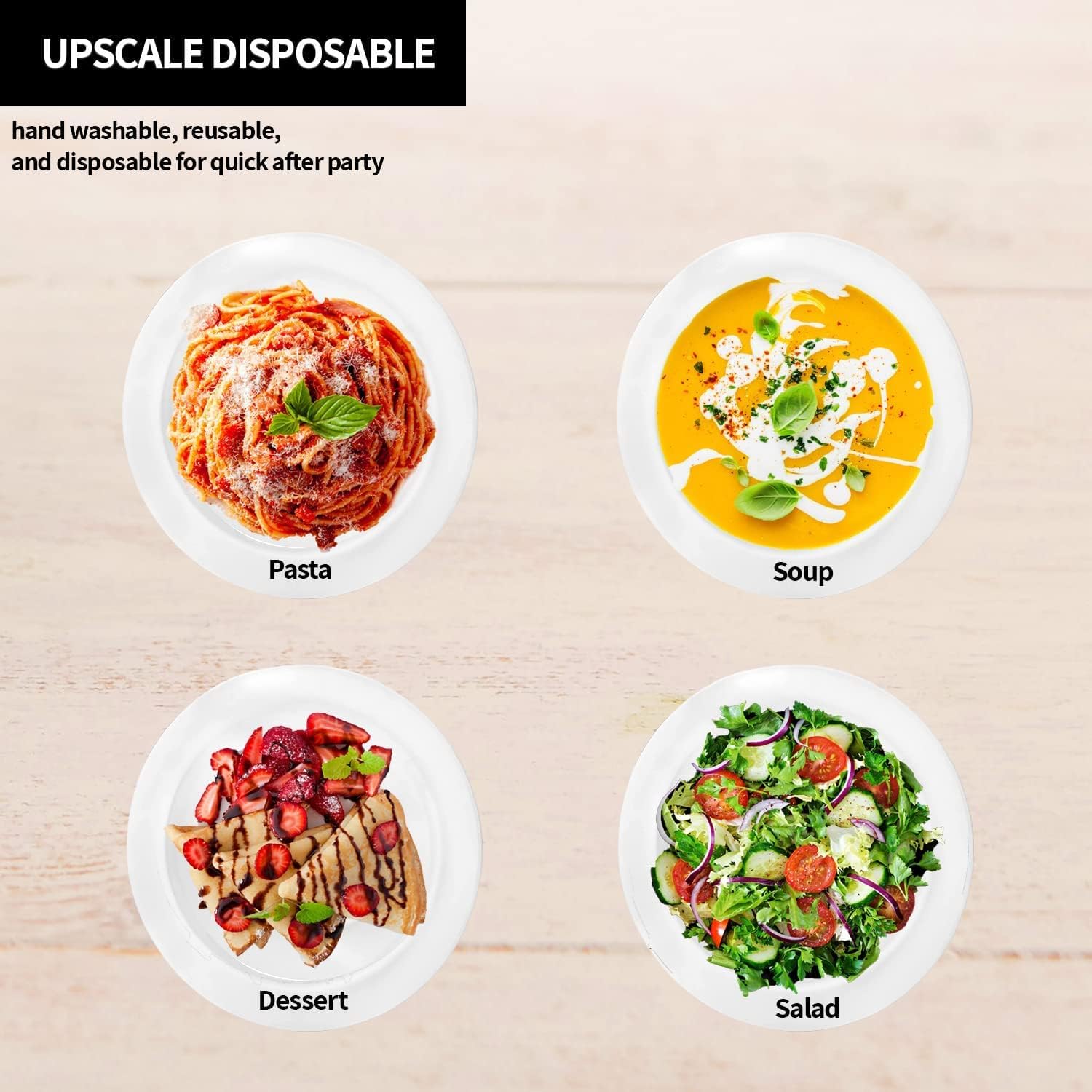 - UPSCALE DISPOSABLE - hand washable, reusable, and disposable for quick after party clean-up.