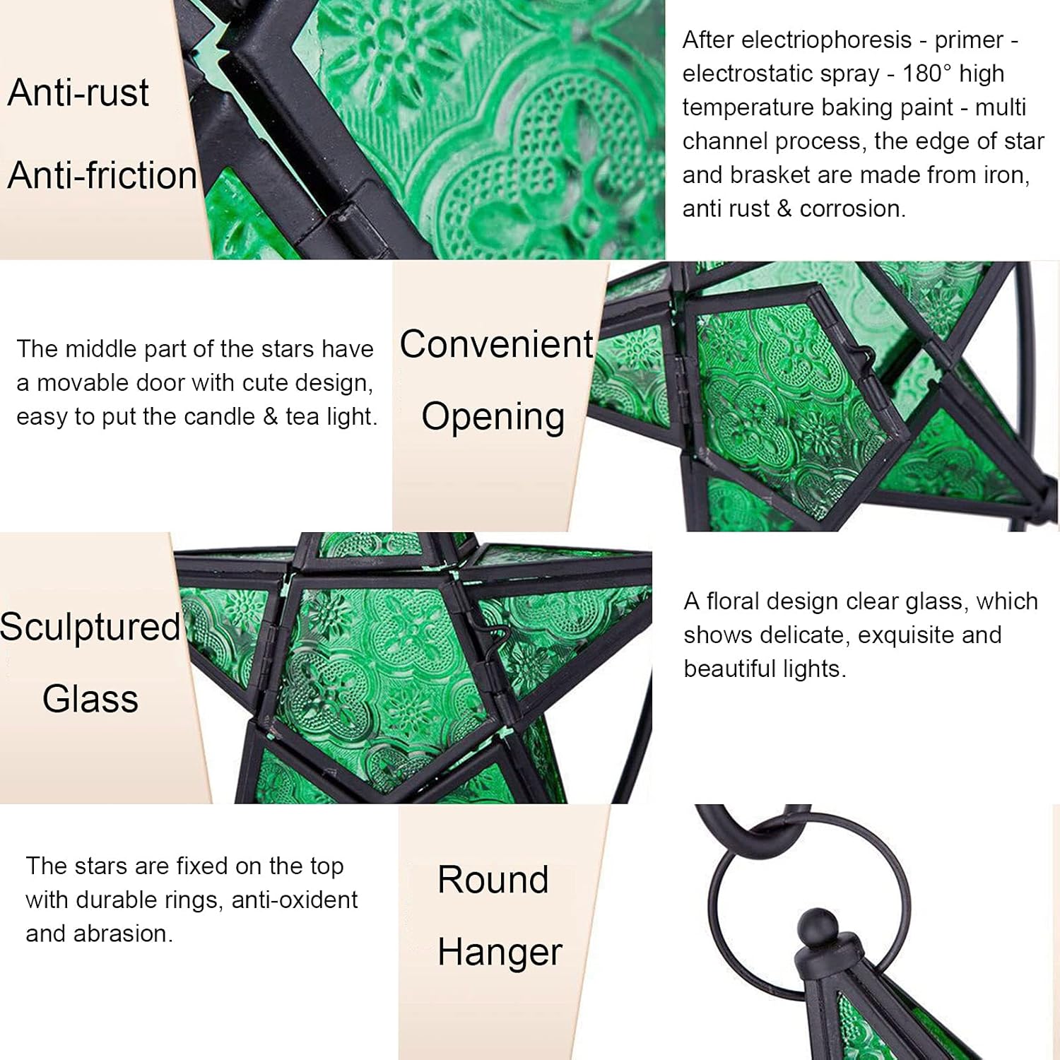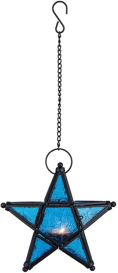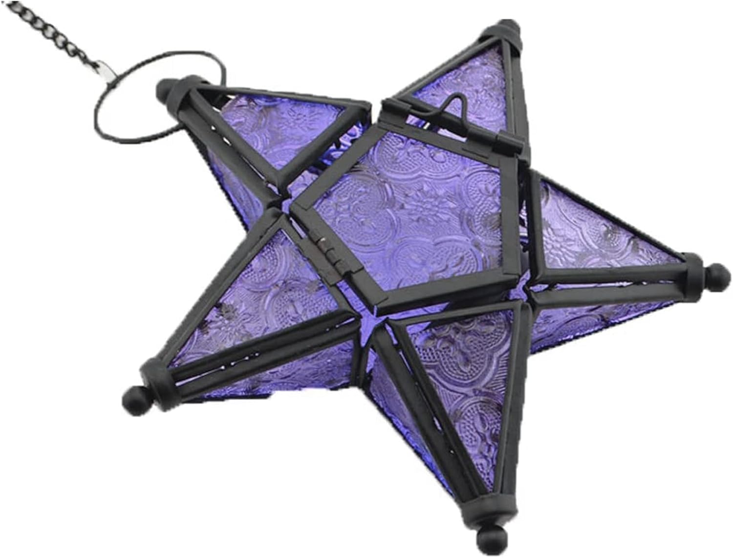 Purple Star Lantern Candle Holder - Decorative Hanging Glass Lantern for Home & Garden
