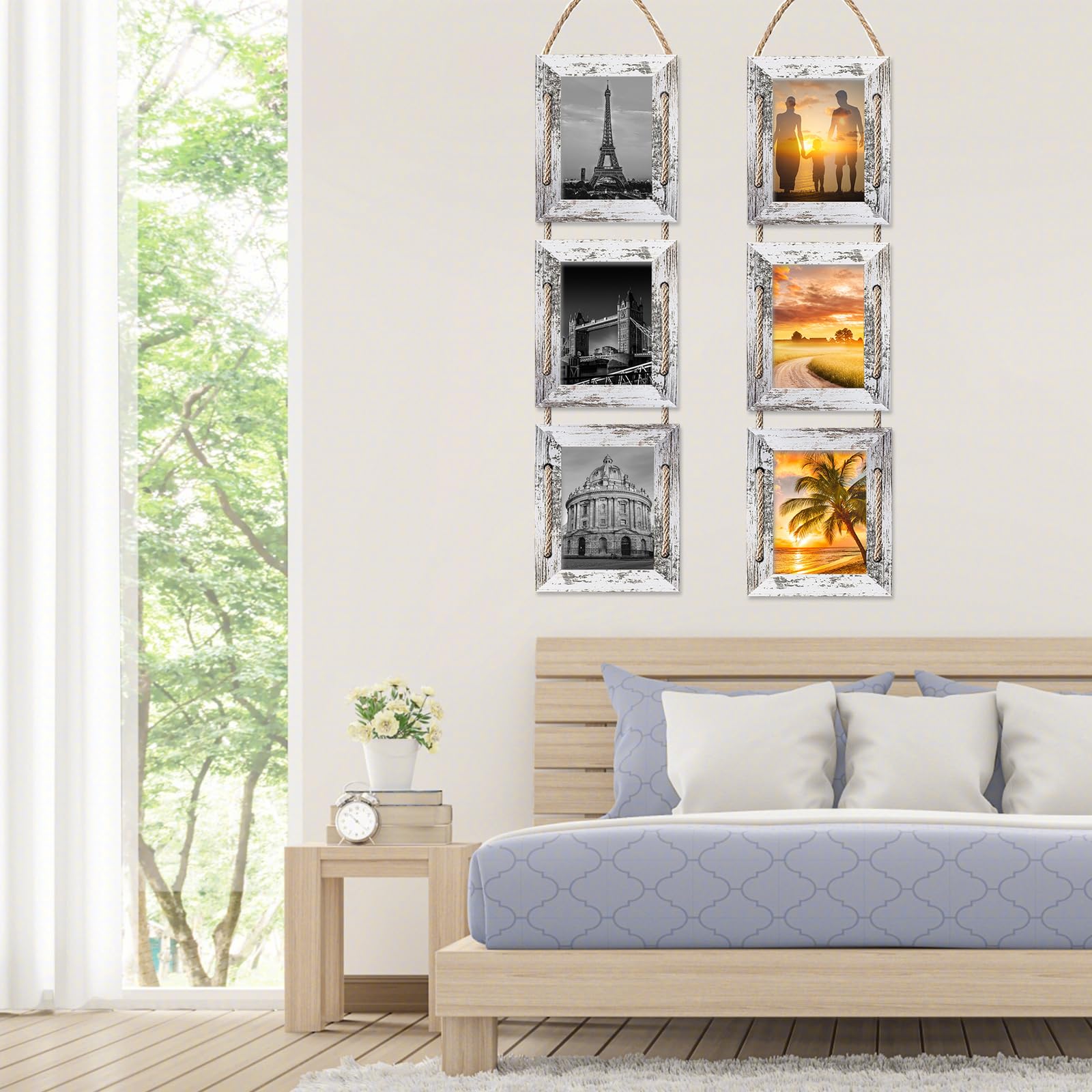 - 4x6 picture frames collage wall decor through a unique design with vintage twine as a link from the center of each frame, making the hanging frames more artistic and vintage style