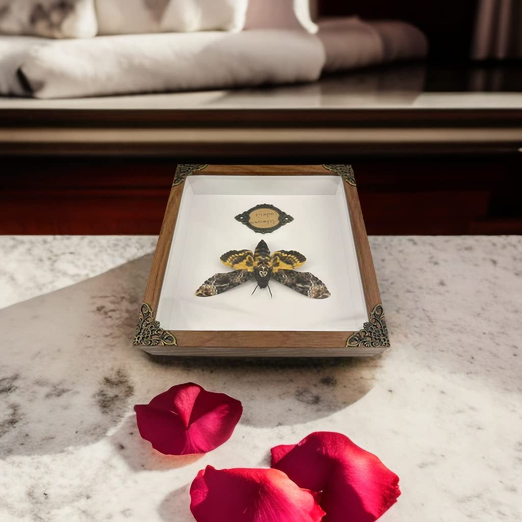 Real Acherontia Death Head Moth Framed,Handmade Wood Shadow Box Insect Specimen for Unique Curiosity Collectors - Tabletop, Wall Art, Home Decor, Living Room, Gallery, and Bedroom (Death's Head Moth)