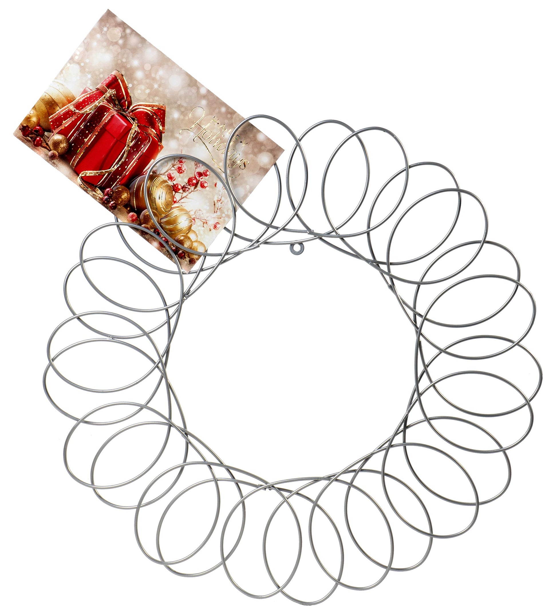 Red Co. Silver Metal Wreath - Wall Mount Christmas Card Holder - 17" Dia