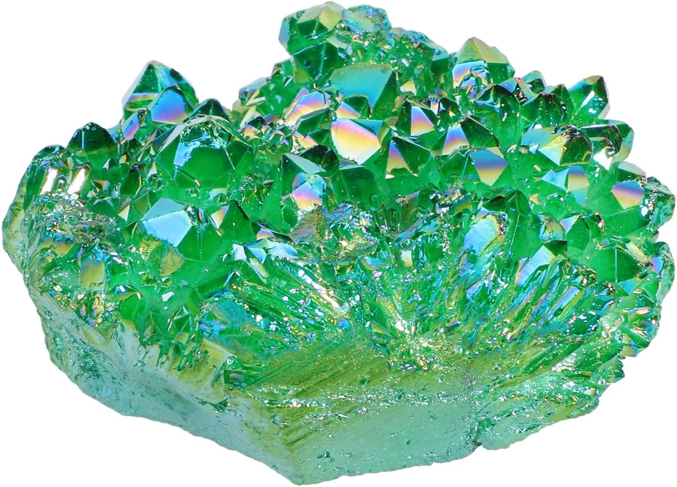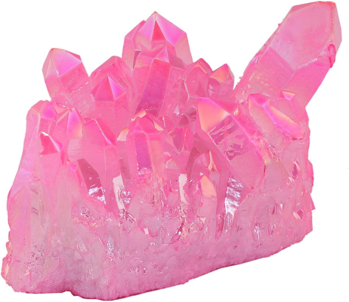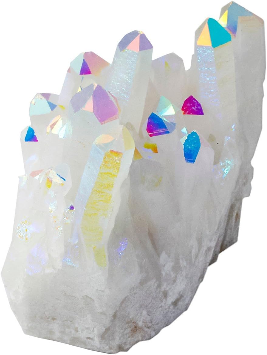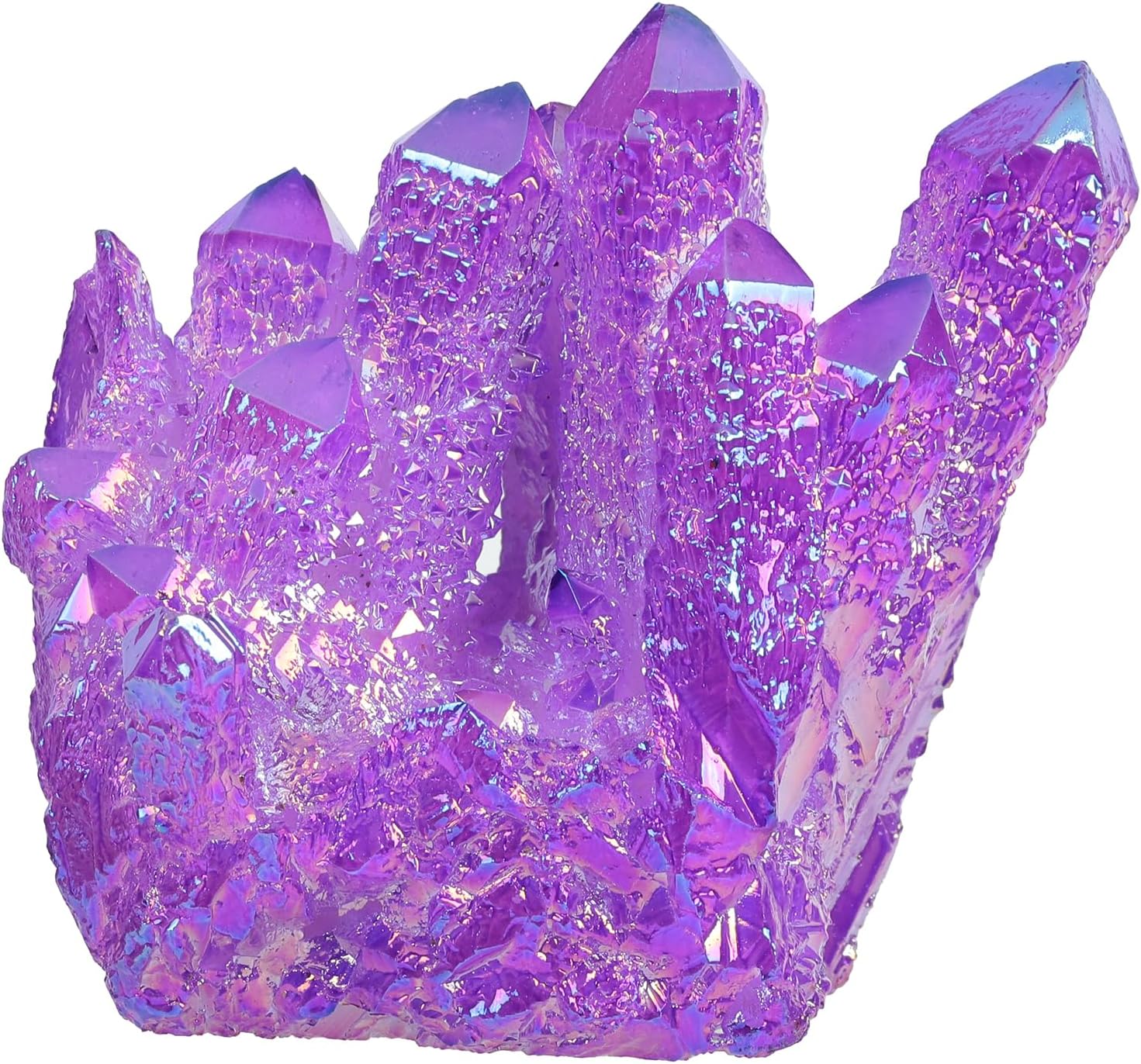 - The natural quartz cluster has been specially treated in a process where a molecular layer of titanium plus other metals has been fused to the surface of the quartz. This results in a permanent coloring of the surface creating a brilliant effect.