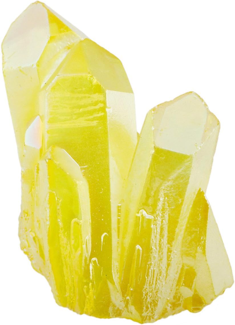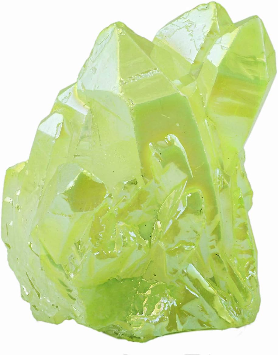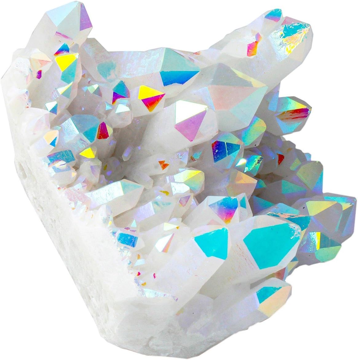 - The natural quartz cluster has been specially treated in a process where a molecular layer of titanium plus other metals has been fused to the surface of the quartz. This results in a permanent coloring of the surface creating a brilliant effect.