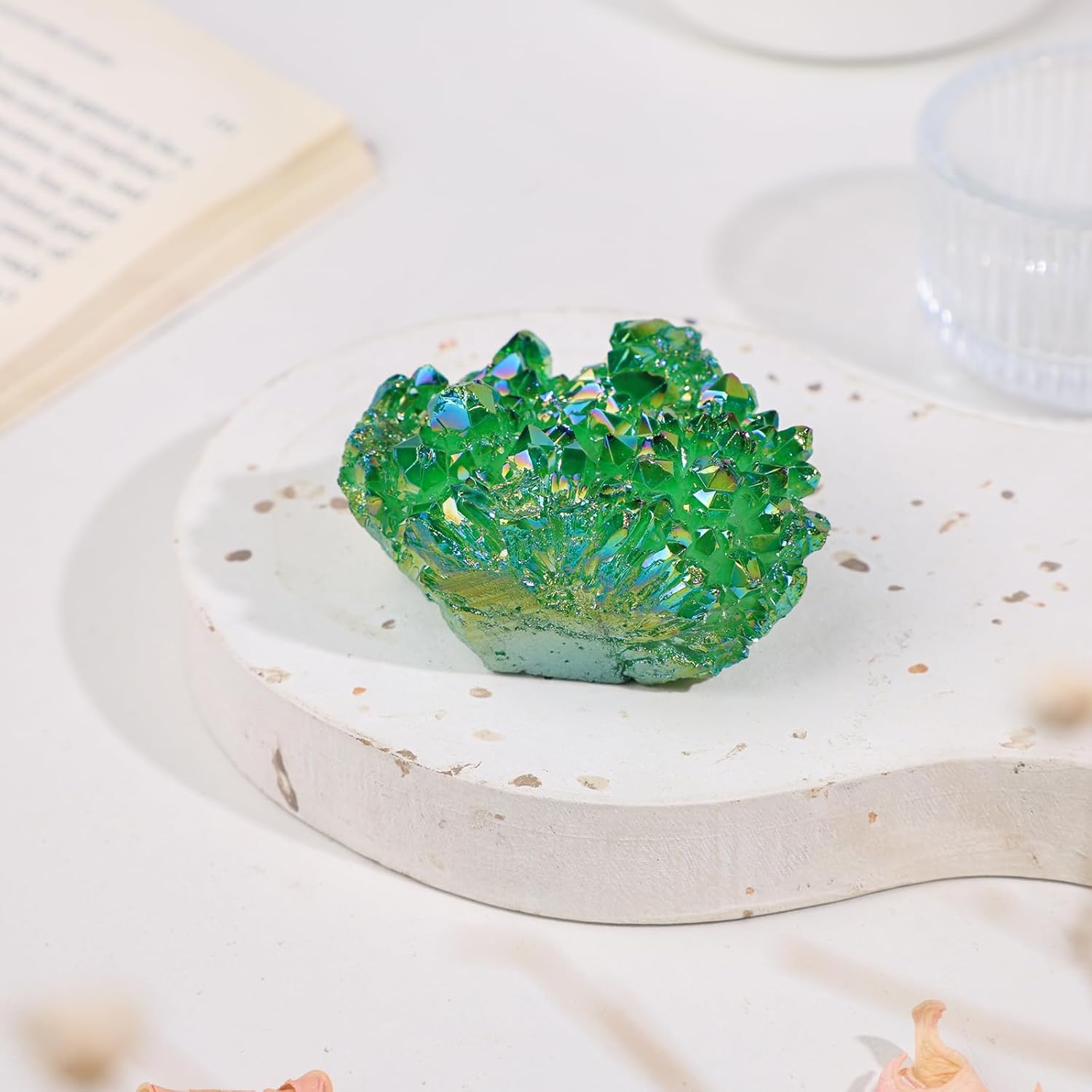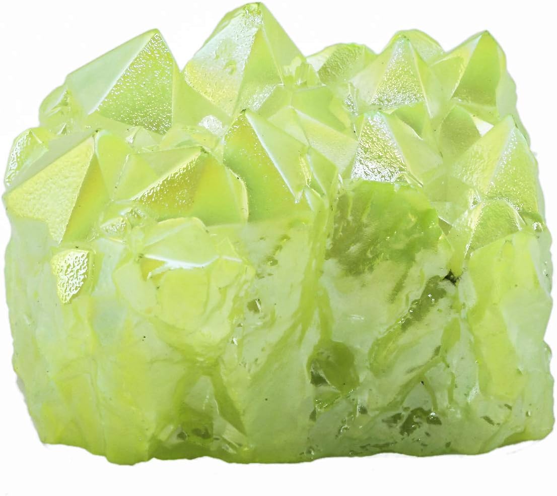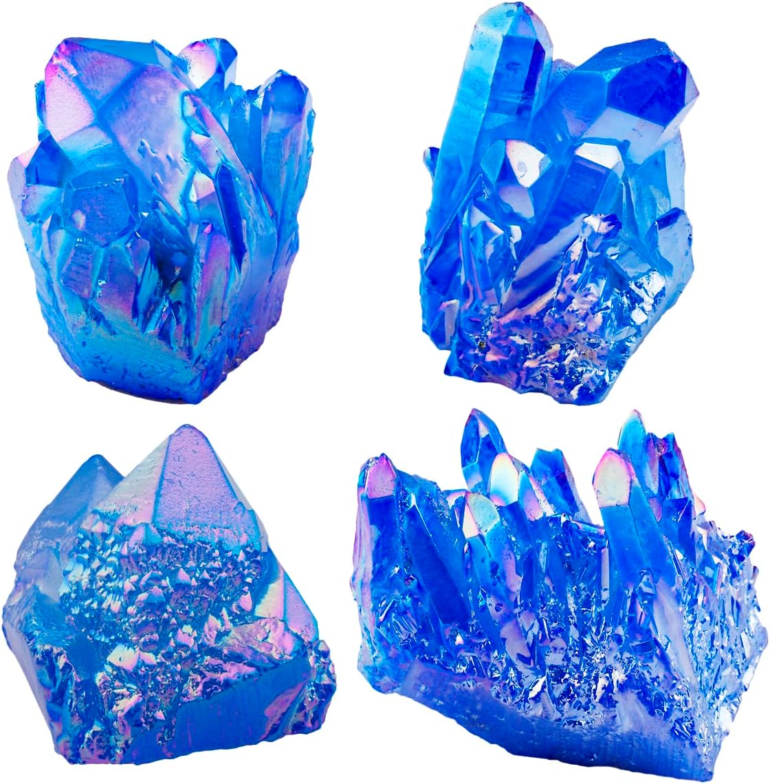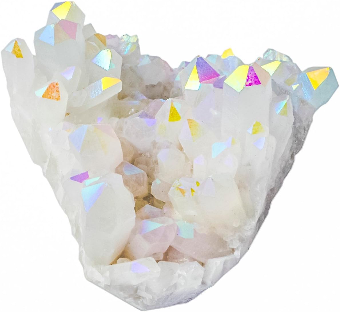 - The natural quartz cluster has been specially treated in a process where a molecular layer of titanium plus other metals has been fused to the surface of the quartz. This results in a permanent coloring of the surface creating a brilliant effect.