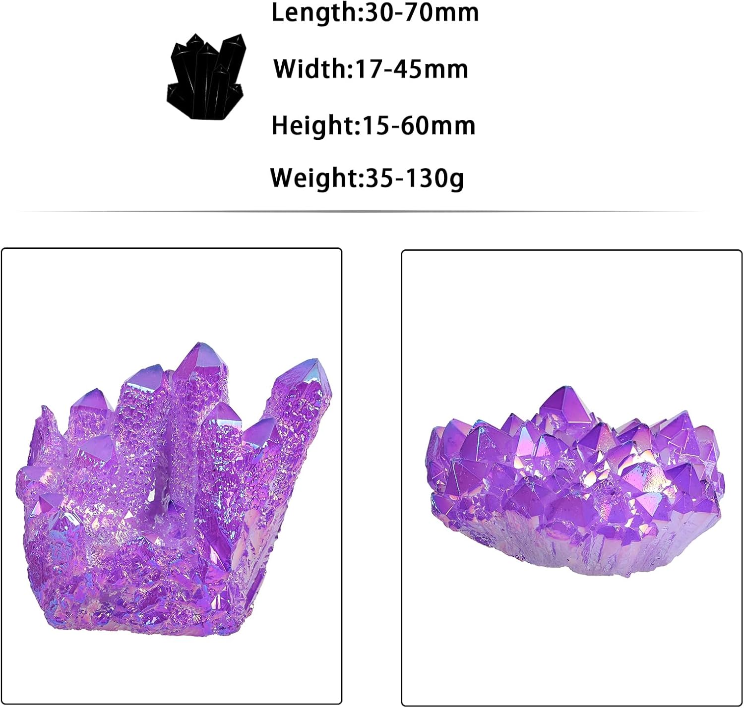 - Crystals are natural,vary in sizes,shapes,colors from lots.Photos were taken close to the item,there may be some flaws,cracks or chips inside the cluster will be normal,you will receive one(s) similar as pictured.