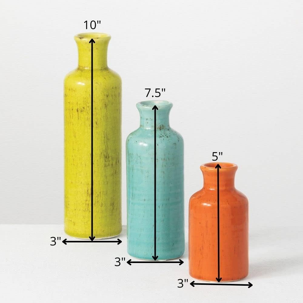 - Living room decor and accessories- (measuring 3”L x 3”W x 10”H; 3”L x 3”W x 7.5”H; 3”L x 3”W x 5”H) These red vases are the perfect home decor accent, and are ideal, for any room, style, or occasion. Whether your style is modern farmhouse, rustic, or cottagecore, or boho, this vase set will keep your home looking up to date year after year. Add in your favorite faux flowers for an extra pop of color.