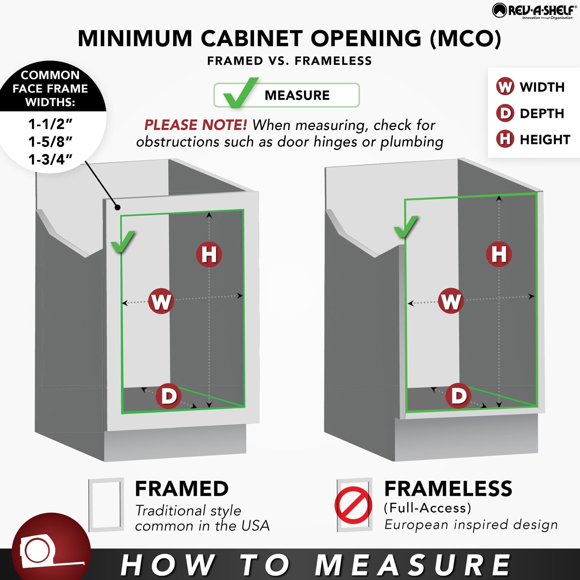 The inside shelf width of the 4SR-15 (small version) is 8-3/8" with a depth of 2-5/8". The outside shelf width is 10-1/2”. Please double check your cabinet shelving and hinge measurements to verify the product will rest in between your shelving open spaces while closed. See 4SR Series spec. image.