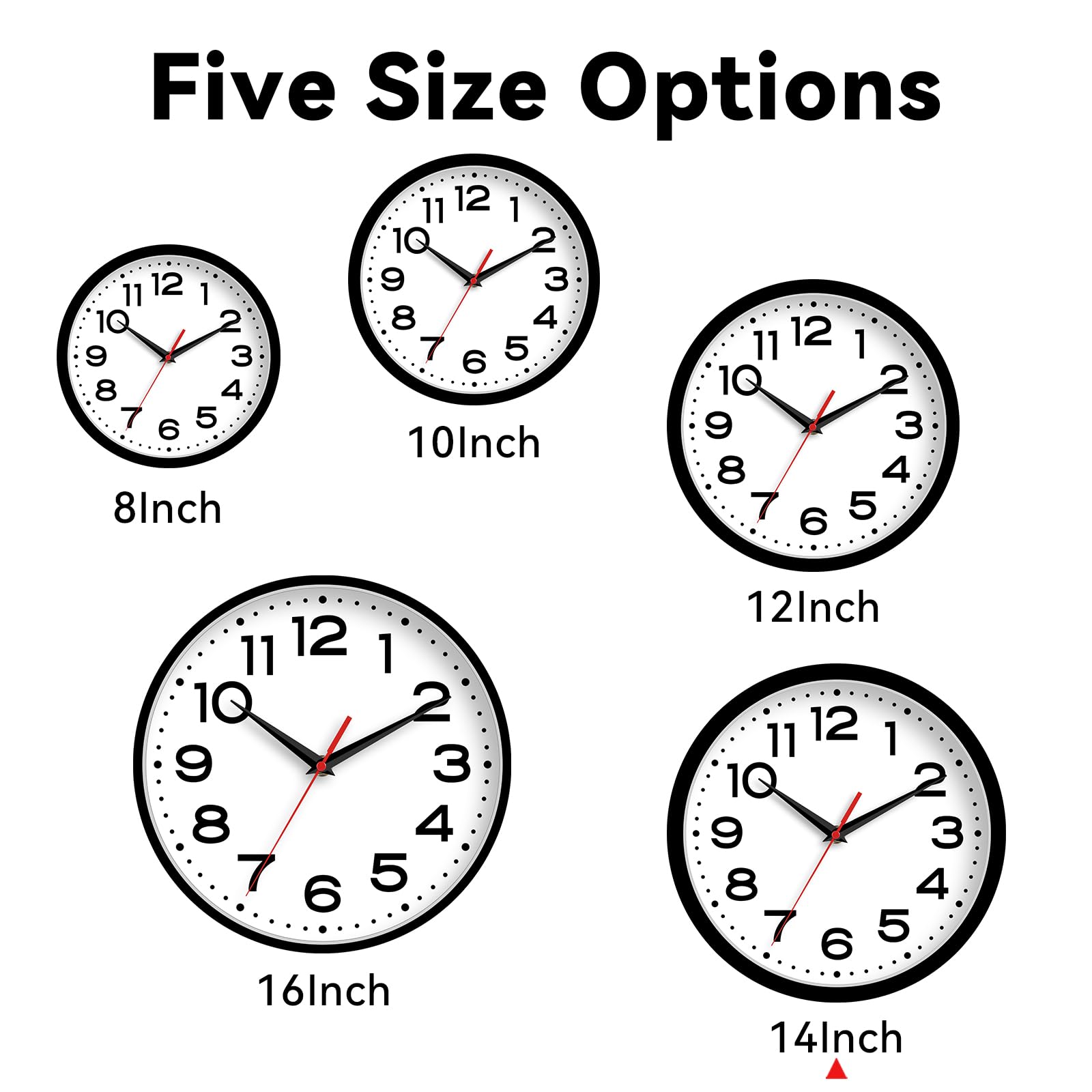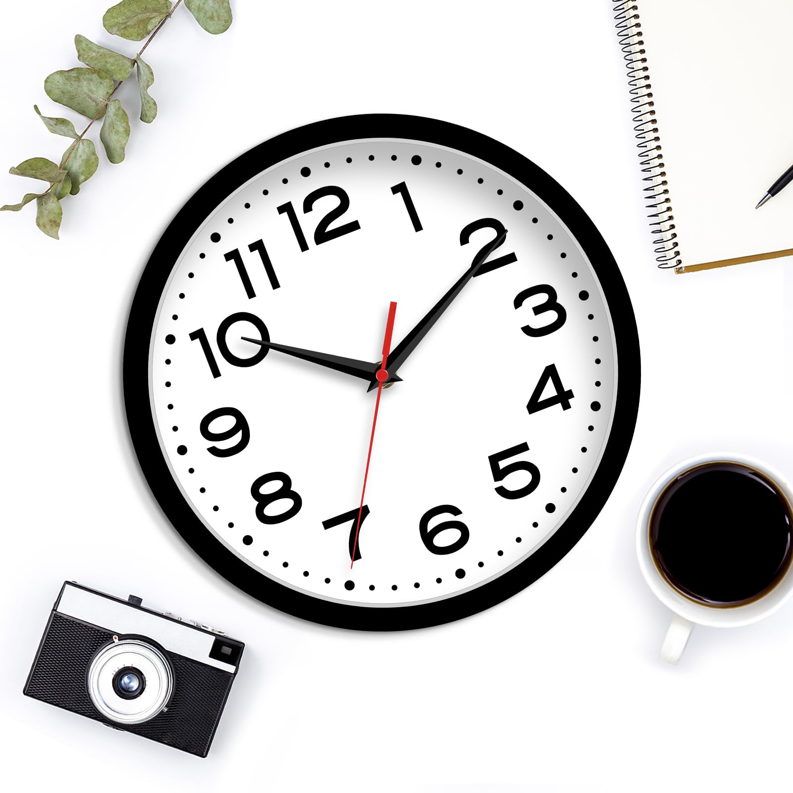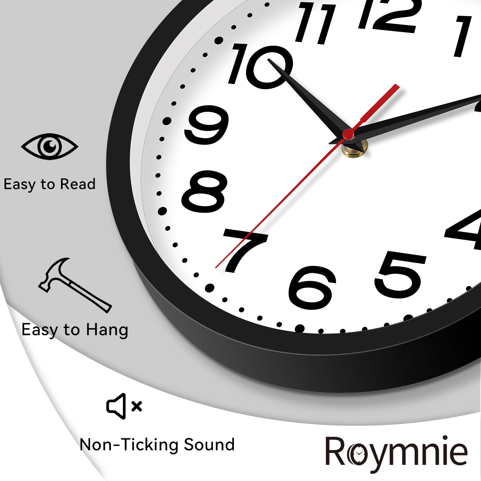 - 1 - See Easily: Roymnie's wall clocks are all large and black numbers against the white clock face. So it's very easy to see.