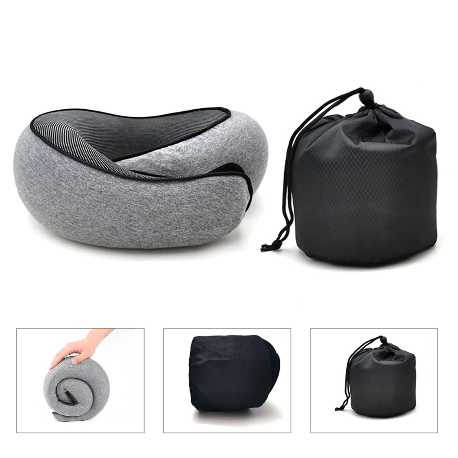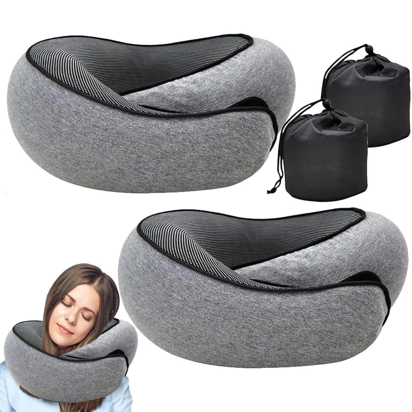 RURING Travel Pillows for Airplanes, Travel Neck Pillow Travel Pillow, Neck Pillow Airplane Memory Foam 360 Degree Support Stowable Pillows for Airplanes Offices and Cars 2PCS (Dark Gray)