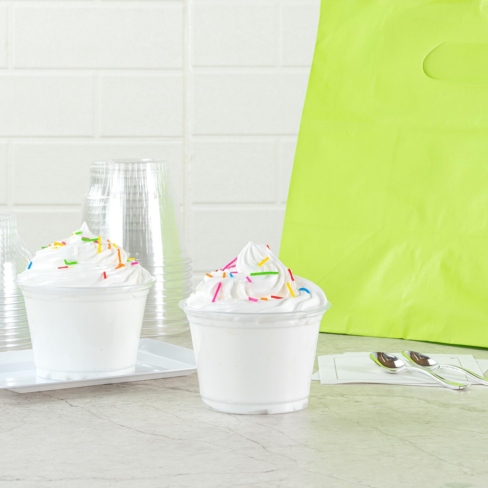 - CONVENIENT DESIGN: For an efficient post-meal cleaning experience, these frozen yogurt cups are disposable and can be easily discarded. They are sustainable to help minimize your carbon footprint.
