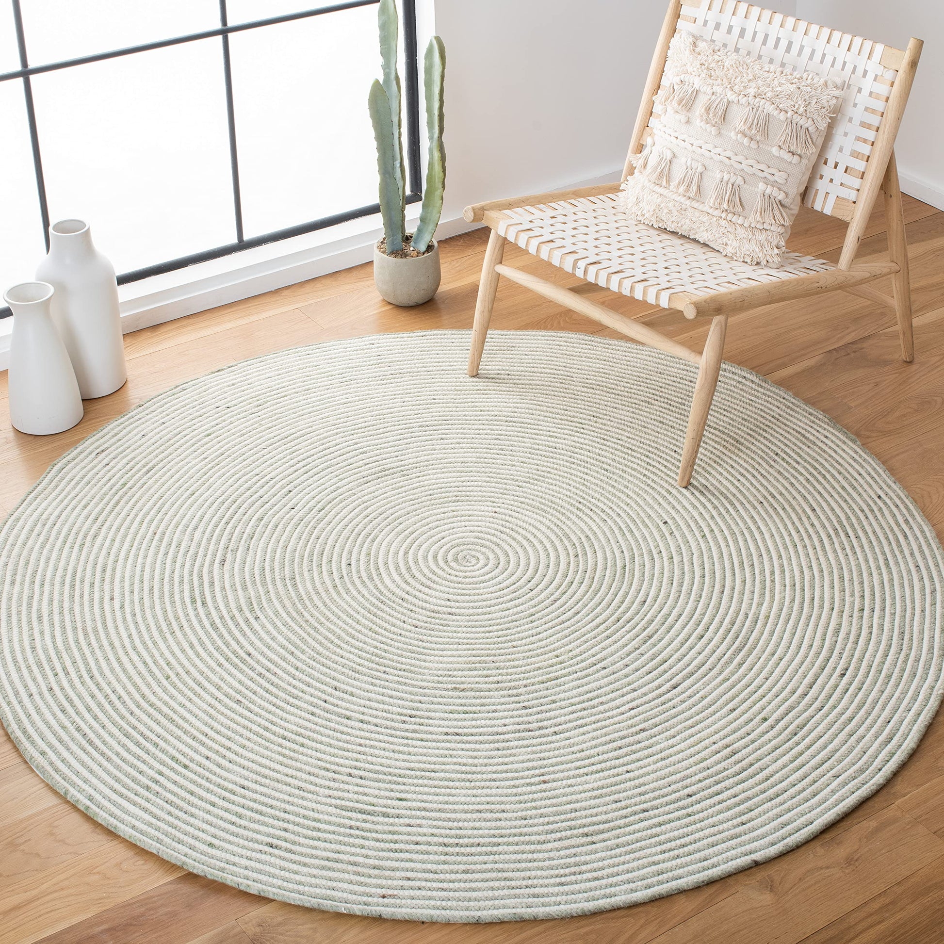 SAFAVIEH Braided Collection 4' Round Green/Ivory BRD905Y Handmade Country Cottage Reversible Wool Entryway Foyer Living Room Bedroom Kitchen Area Rug