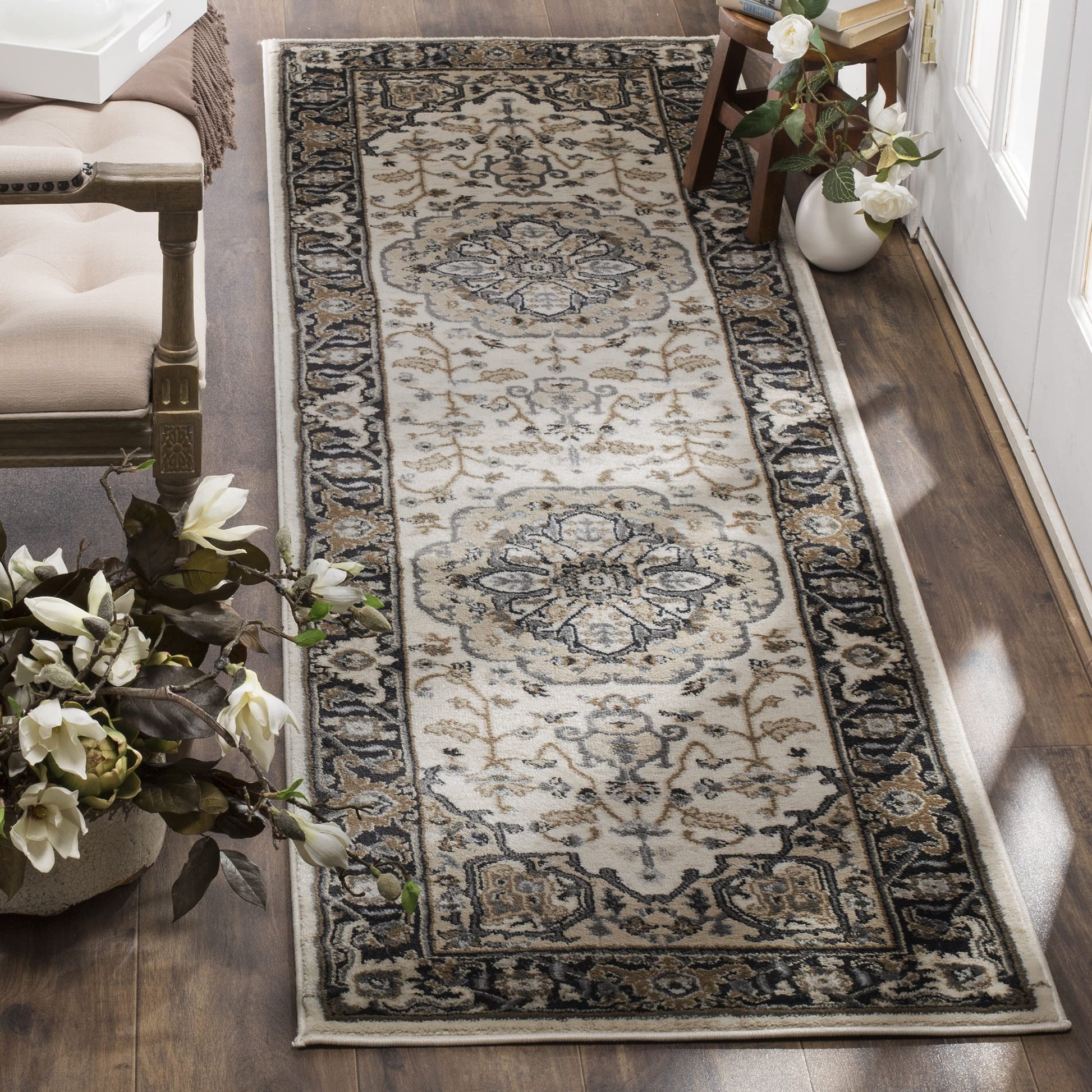Details: Safavieh's Lyndhurst collection offers the beauty and painstaking detail of traditional Persian and European styles with the ease of polypropylene. With a symphony of floral, vines and latticework detailing, these beautiful rugs bring warmth and life to any room.