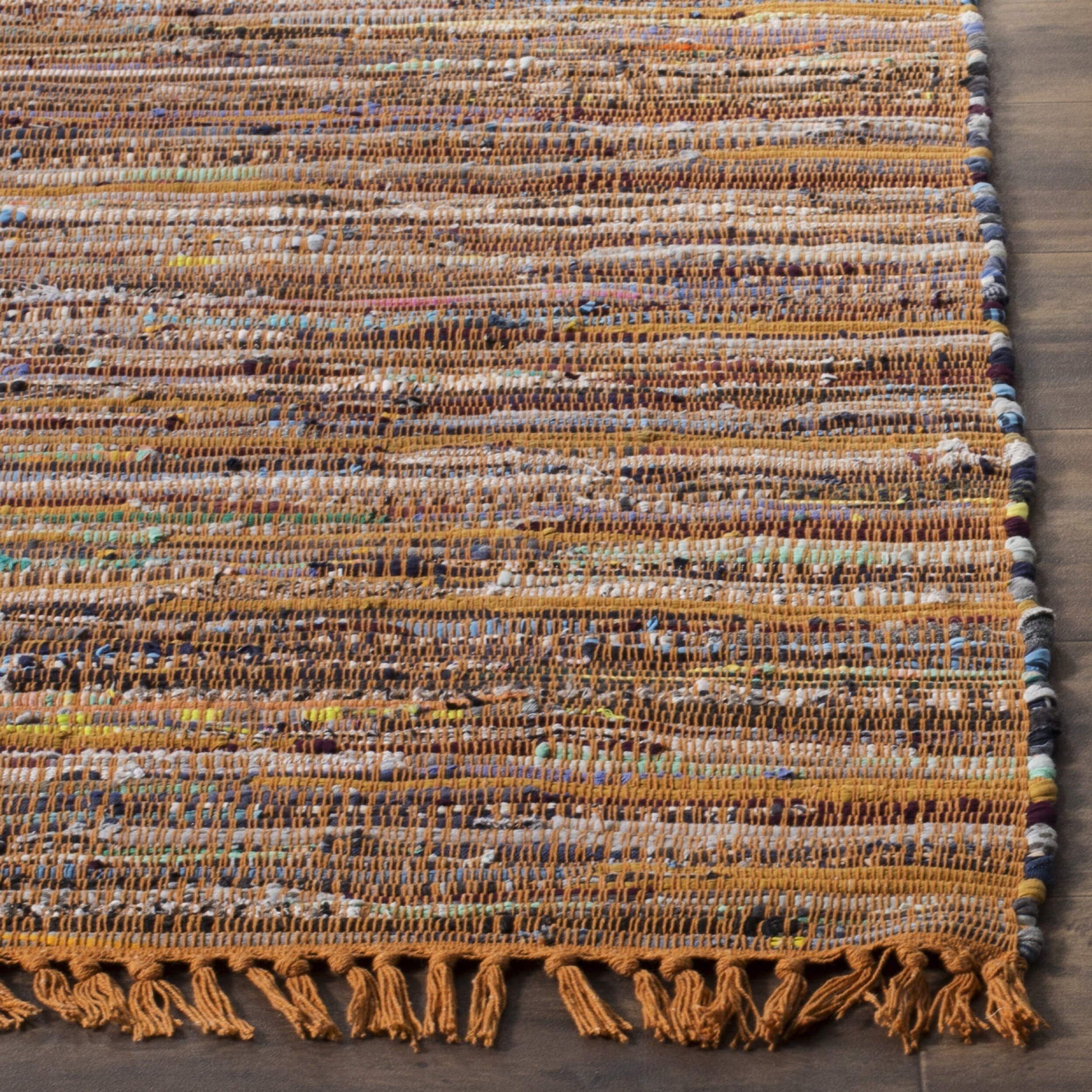 SAFAVIEH Rag Rug Collection 6' Square Gold / Multi RAR127N Handmade Boho Stripe Cotton Area Rug