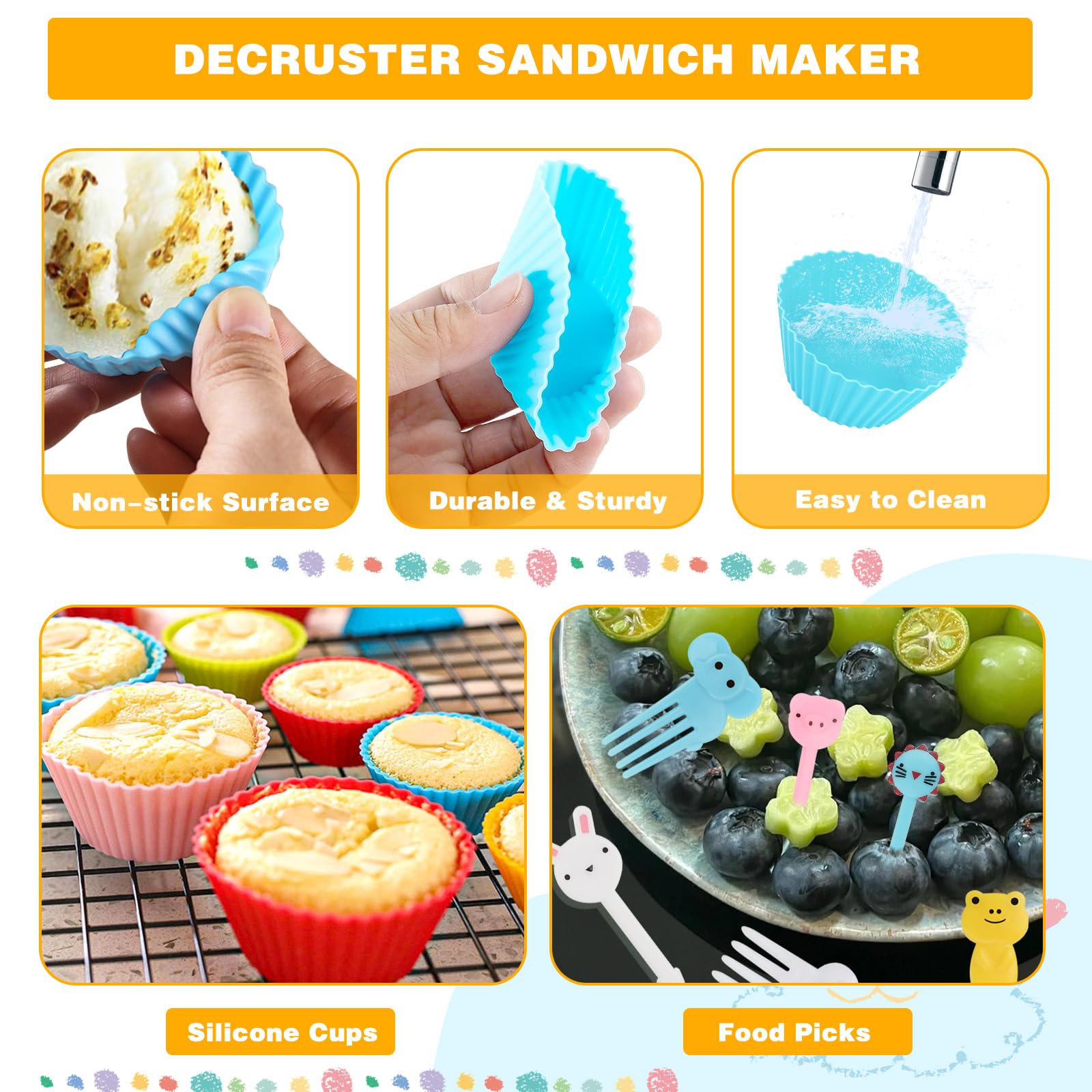 - 【WIDE APPLICATION & GIFT CHOICE】 Our sandwich cutters and fruit cutters can also be used to cut soft candies, bread, cookies, dough, etc. The reusable silicone baking cups can also be used for baking, children's lunch boxes, snack holders, etc. The included honey stick also allows you to add honey to your sandwiches to create new flavors. Our sandwich cutters are also ideal gifts for children, lovers, and friends, suitable for birthdays, Children's Day, Thanksgiving, Christmas, New Year and other occasions.