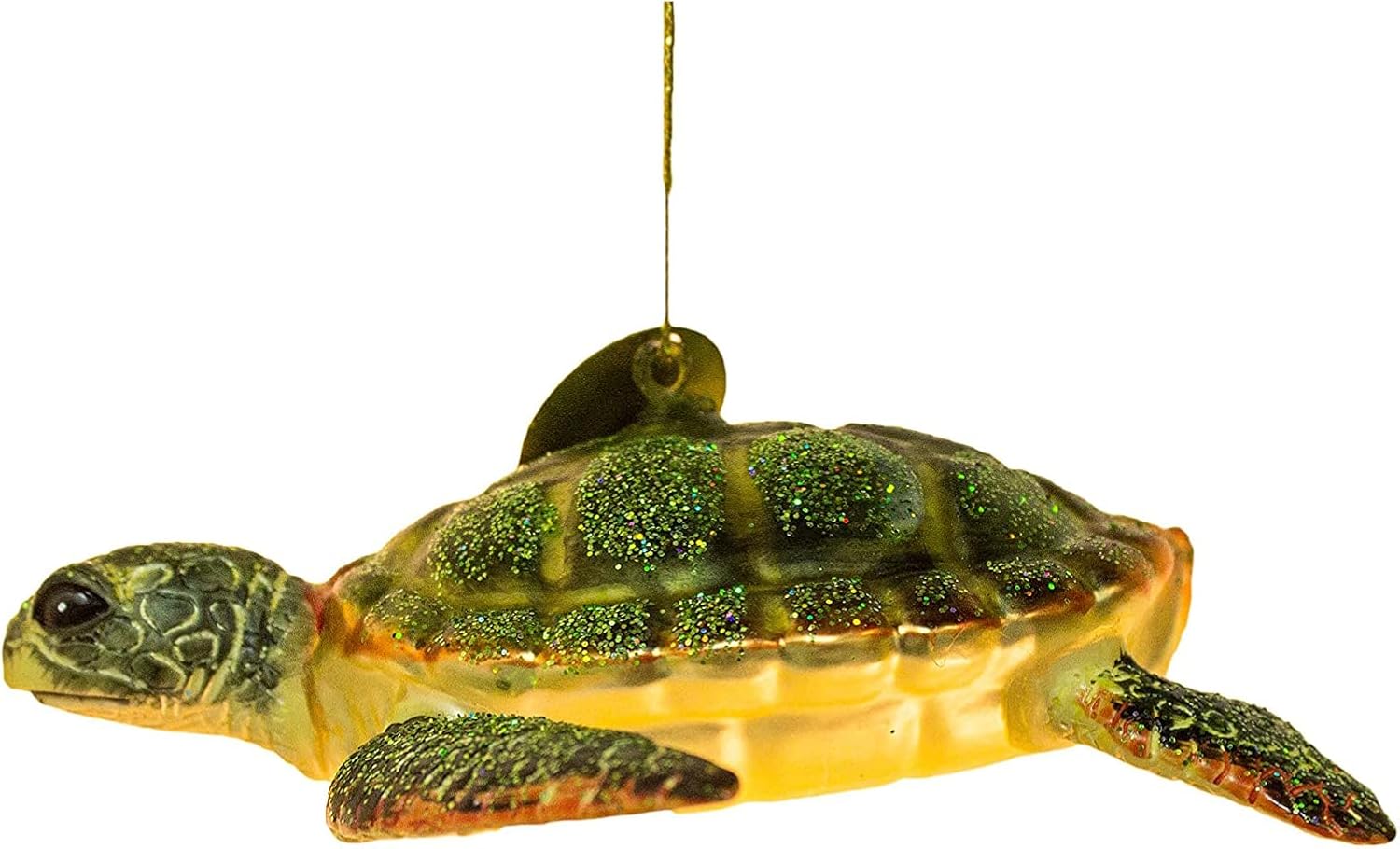 Sea Turtle Blown Glass Christmas Ornament - 5 Inch Holiday Decor
