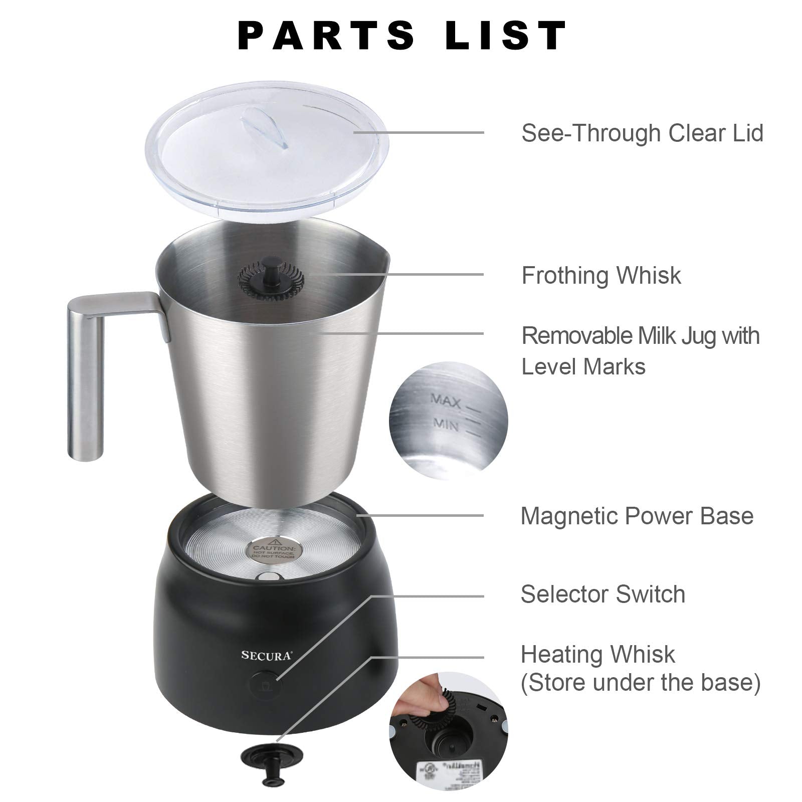 Secura Detachable Milk Frother, 17oz Electric Milk Steamer Stainless Steel, Automatic Hot/Cold Foam and Hot Chocolate Maker with Dishwasher Safe, 120V