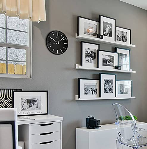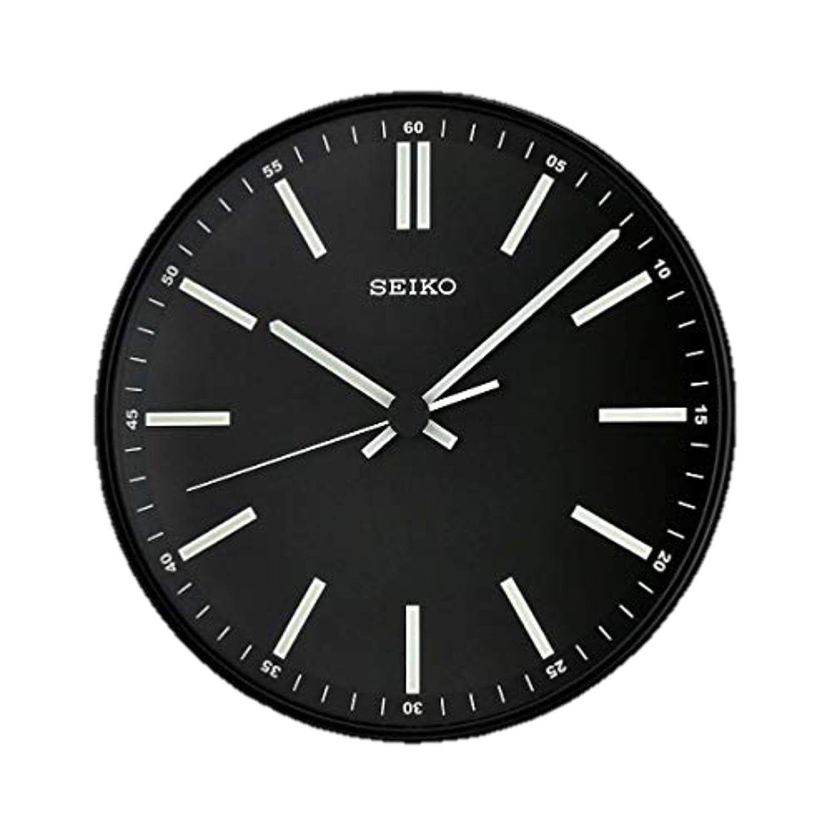 This simple, ultra-modern wall clock brings simplistic style to any space. It features a round black metal frame with easy-to-read white markers.