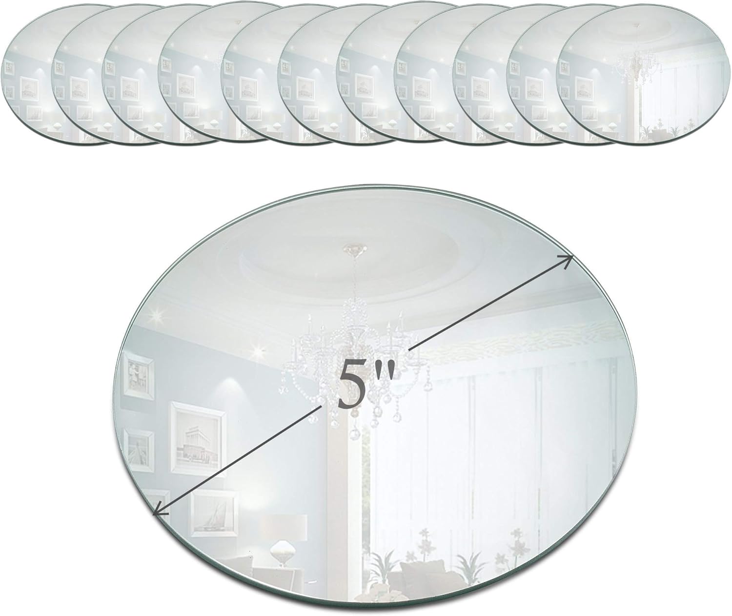 Set of 12 Beveled Edge 5-Inch Round Mirror Candle Plates for Centerpieces & Crafts