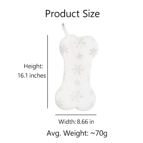 SherryDC White Plush Bone Christmas Stockings for Pet 2 Packs, Snowflake with Silver Foil Stamping, Holiday Hanging Socks for Fireplace Xmas Decor