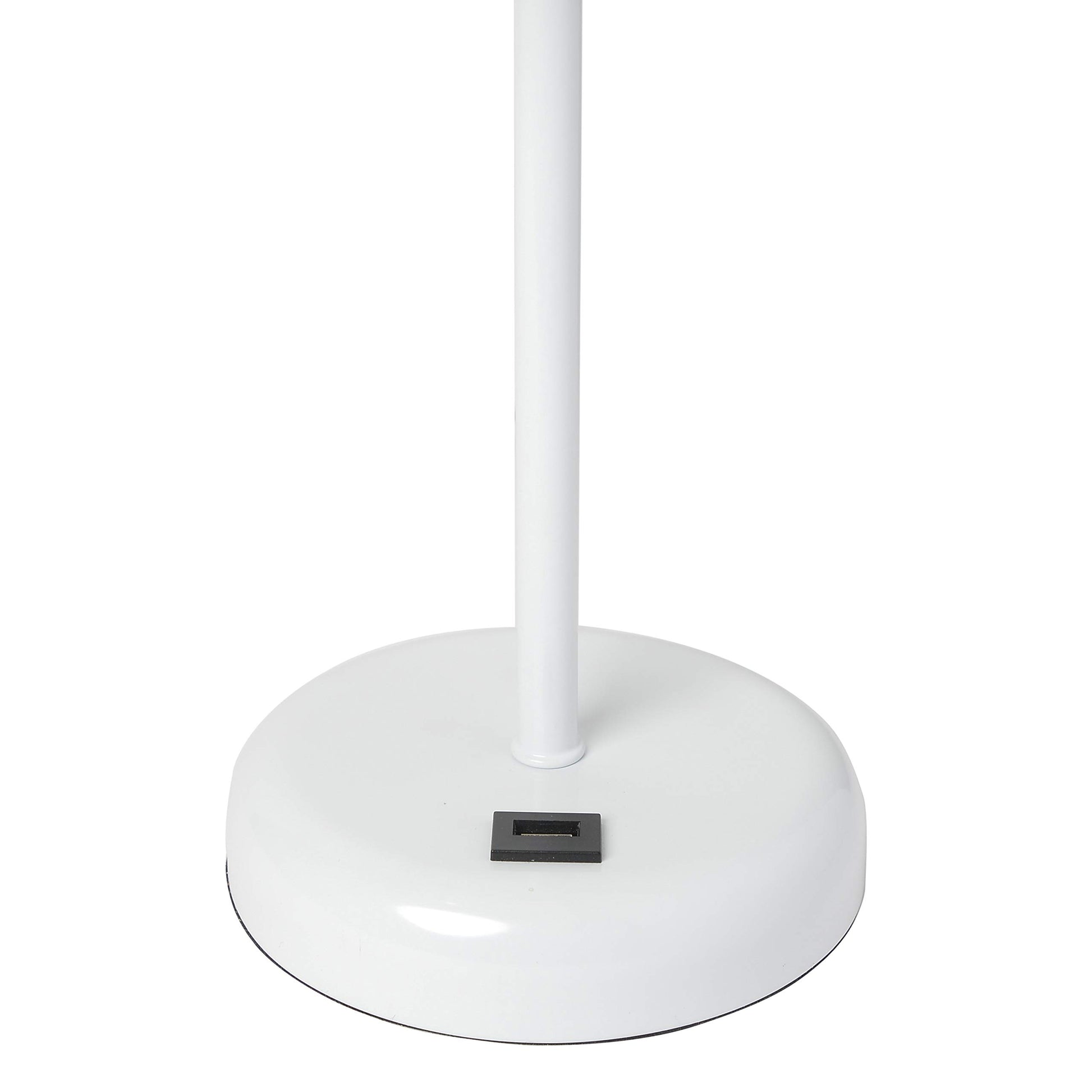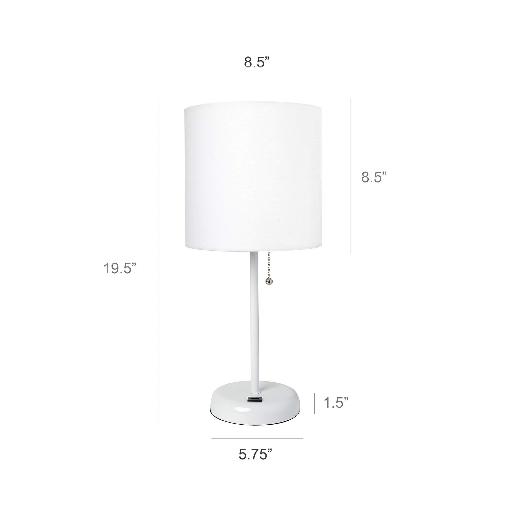 Details: This fun and fashionable lamp set features 2 white bases and a pair of white fabric shades. Each lamp comes equipped with a USB seated in the base for use to charge mobile phones, handheld games, tablets, and other small electronics. This two piece table lamp set will add a touch of fabulous flair to any room. Perfect for bedrooms, kids and teens, college dorms, nurseries, or fun offices!