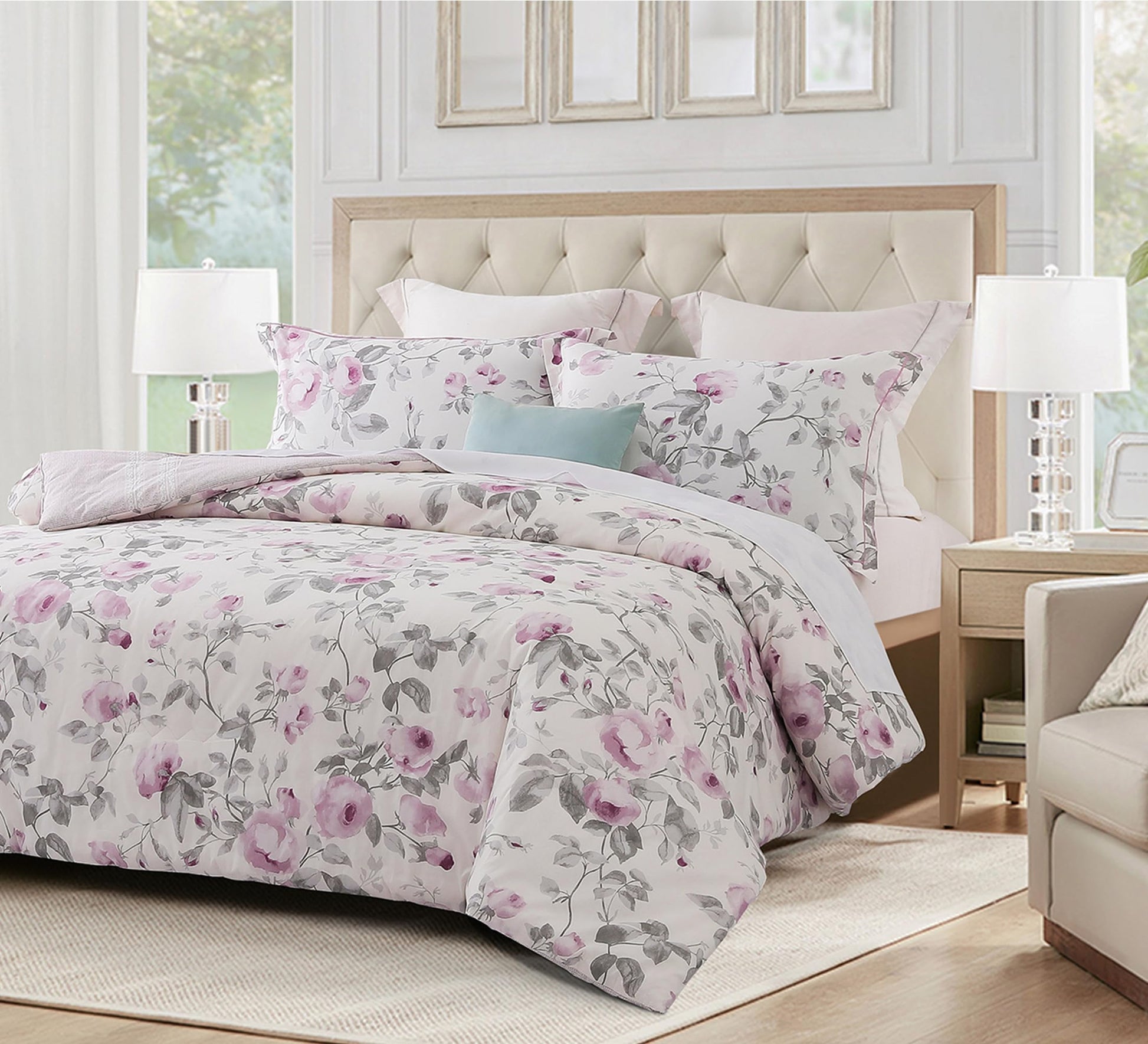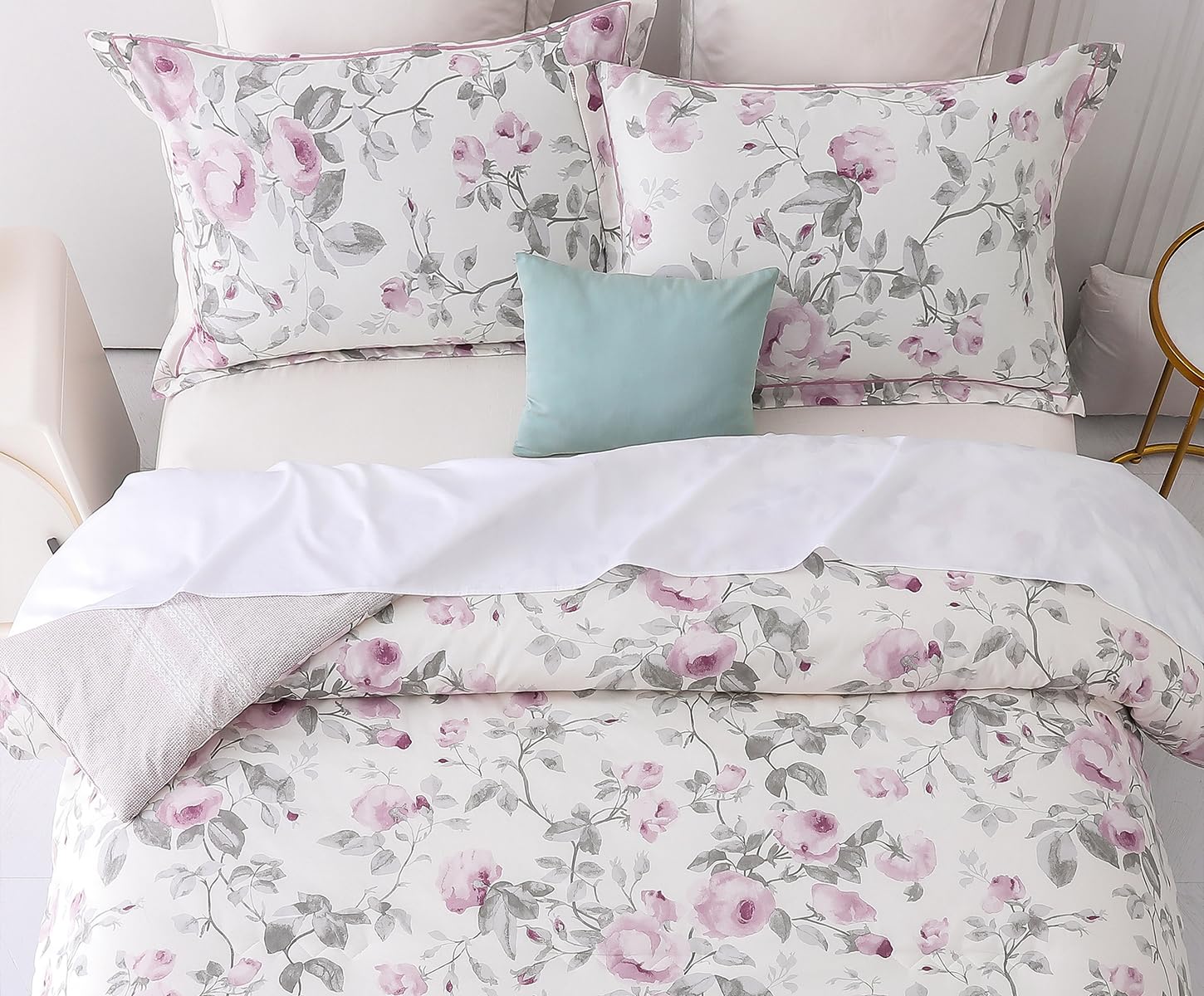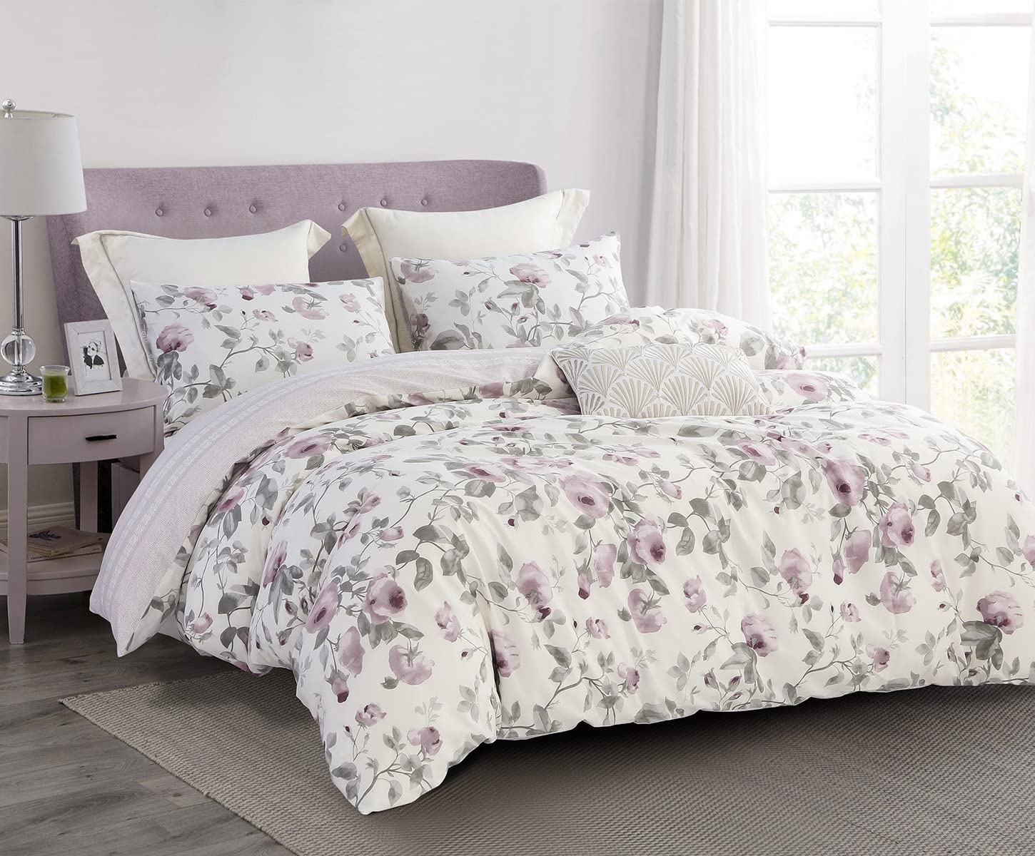 SLEEPBELLA Comforter Twin Size, 600 Thread Count Cotton White Print with Purple Flowers Reversible Comforter Sets, Down Alternative Bedding Set 2Pcs(Twin, Purple Floral)
