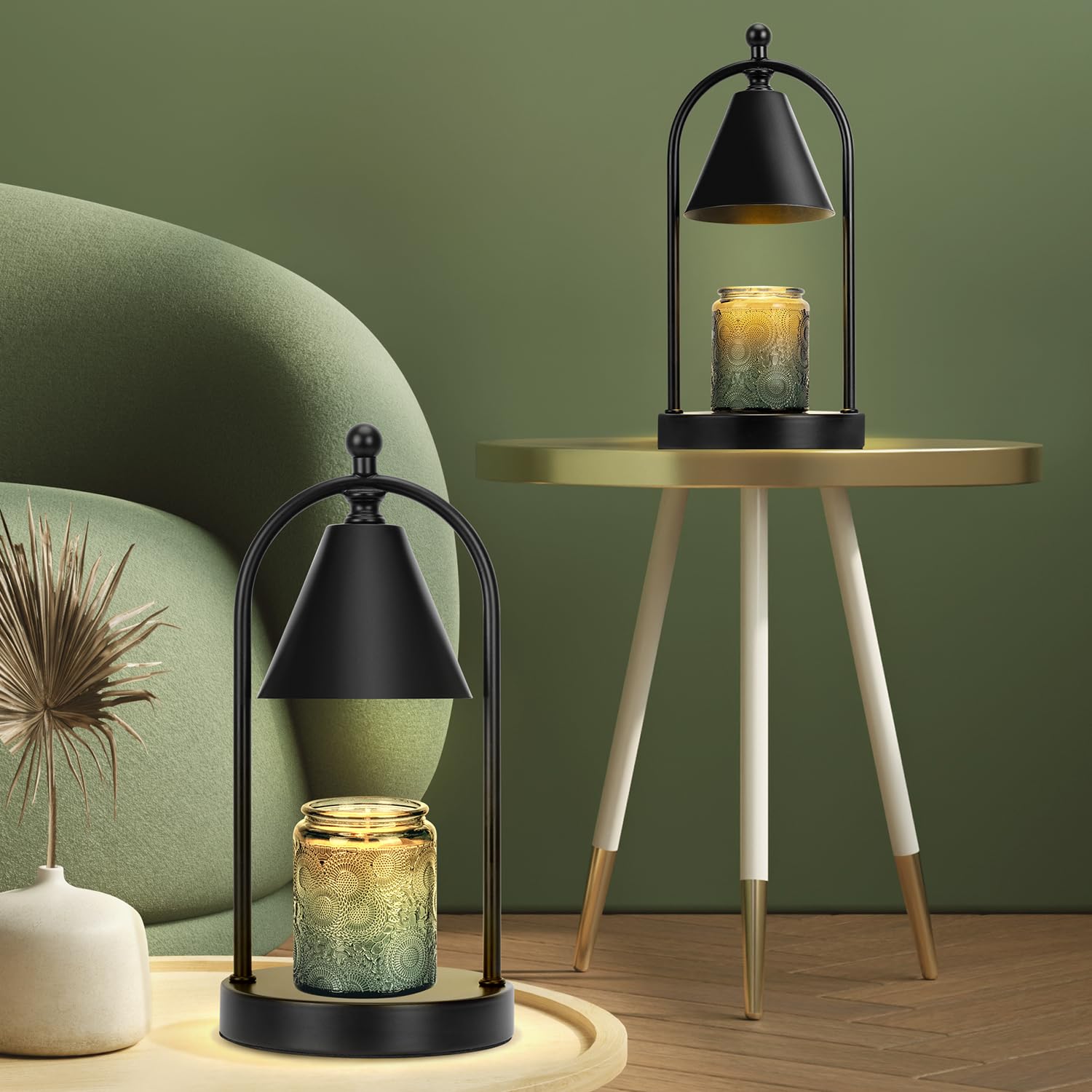 Soilsiu 2 Packs Candle Warmer Lamp with Timer, Electric Black Candle Warmer Light for Bedroom, Dimmable Wax Melts Warmer for Candle Jars, Home Decor Beside Lamp Gifts for Women