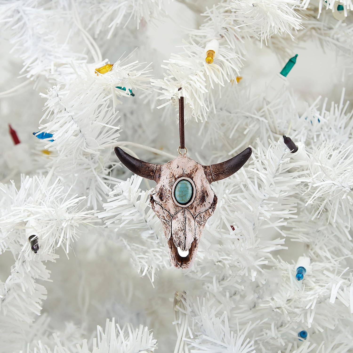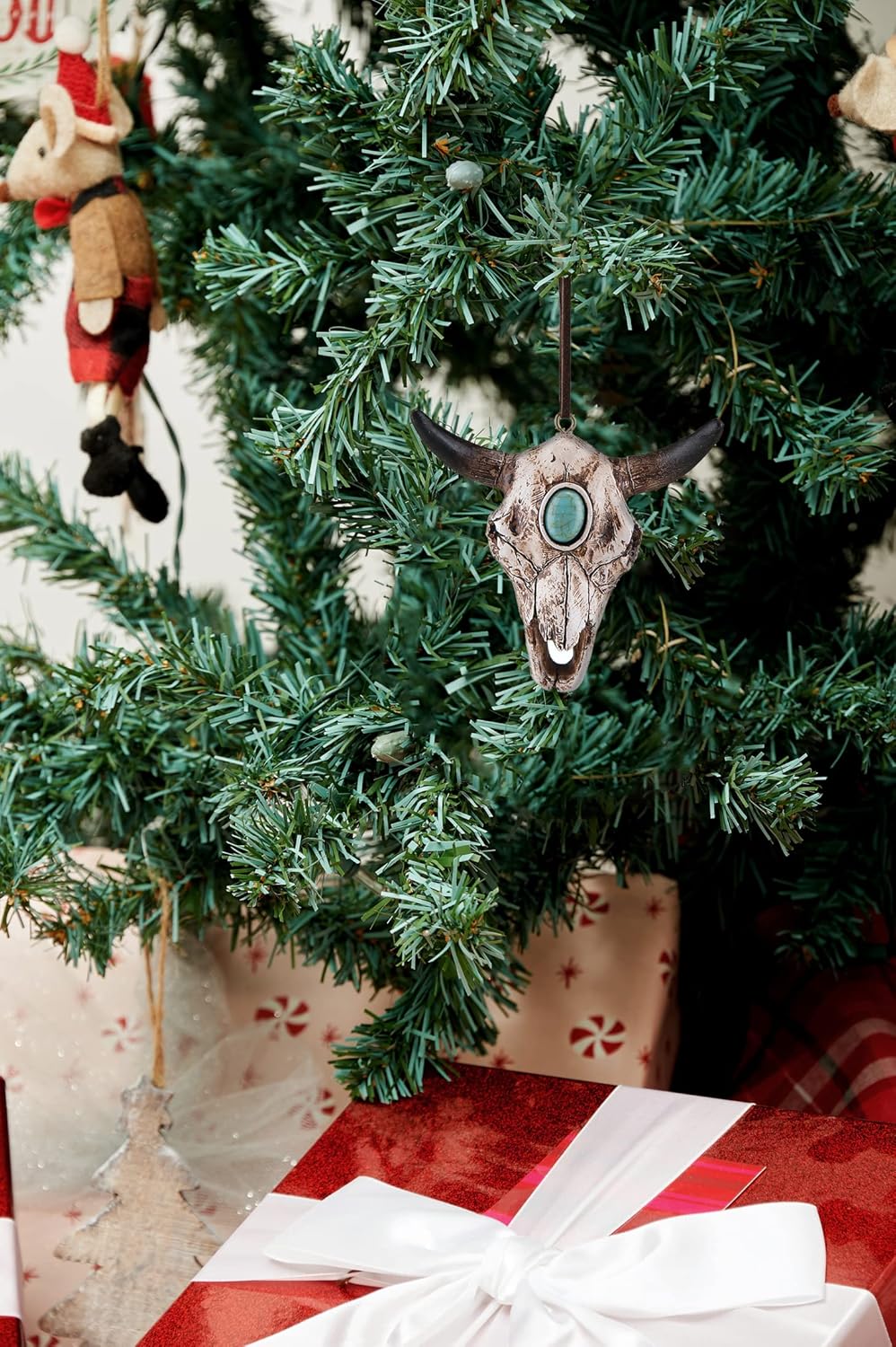 Southwestern Cow Skull Decorative Ornament - Rustic Texas Ranch Decor for Christmas & Halloween
