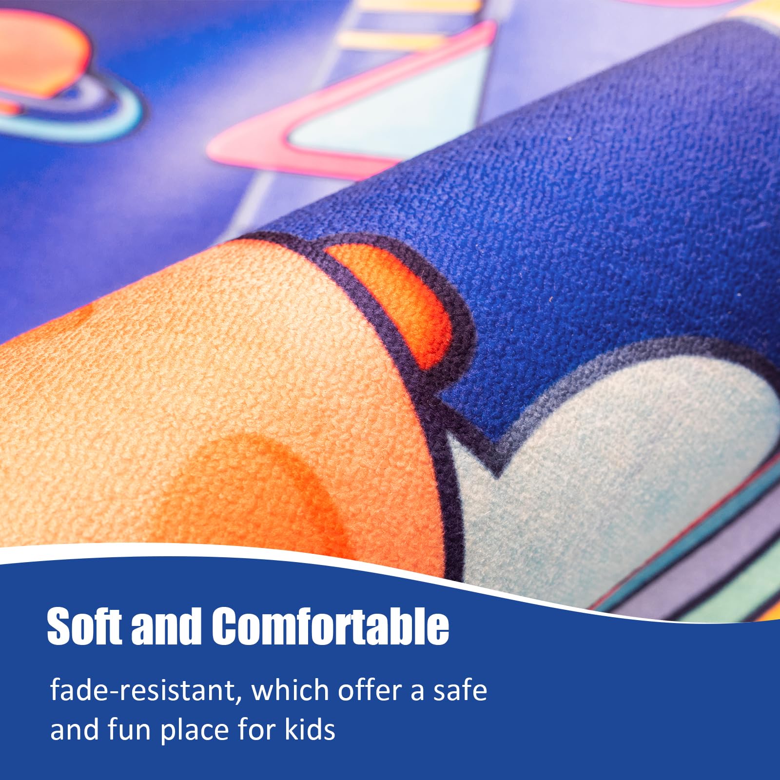 - VERSATILE AND WORTH GIFTING: This space themed rug is ideal for children's rooms, playrooms,classrooms, daycare centers and bedrooms,and it is also a perfect gift for family,friends, children,and relatives.It is both decorative and practical play mat to brighten up your child's space.