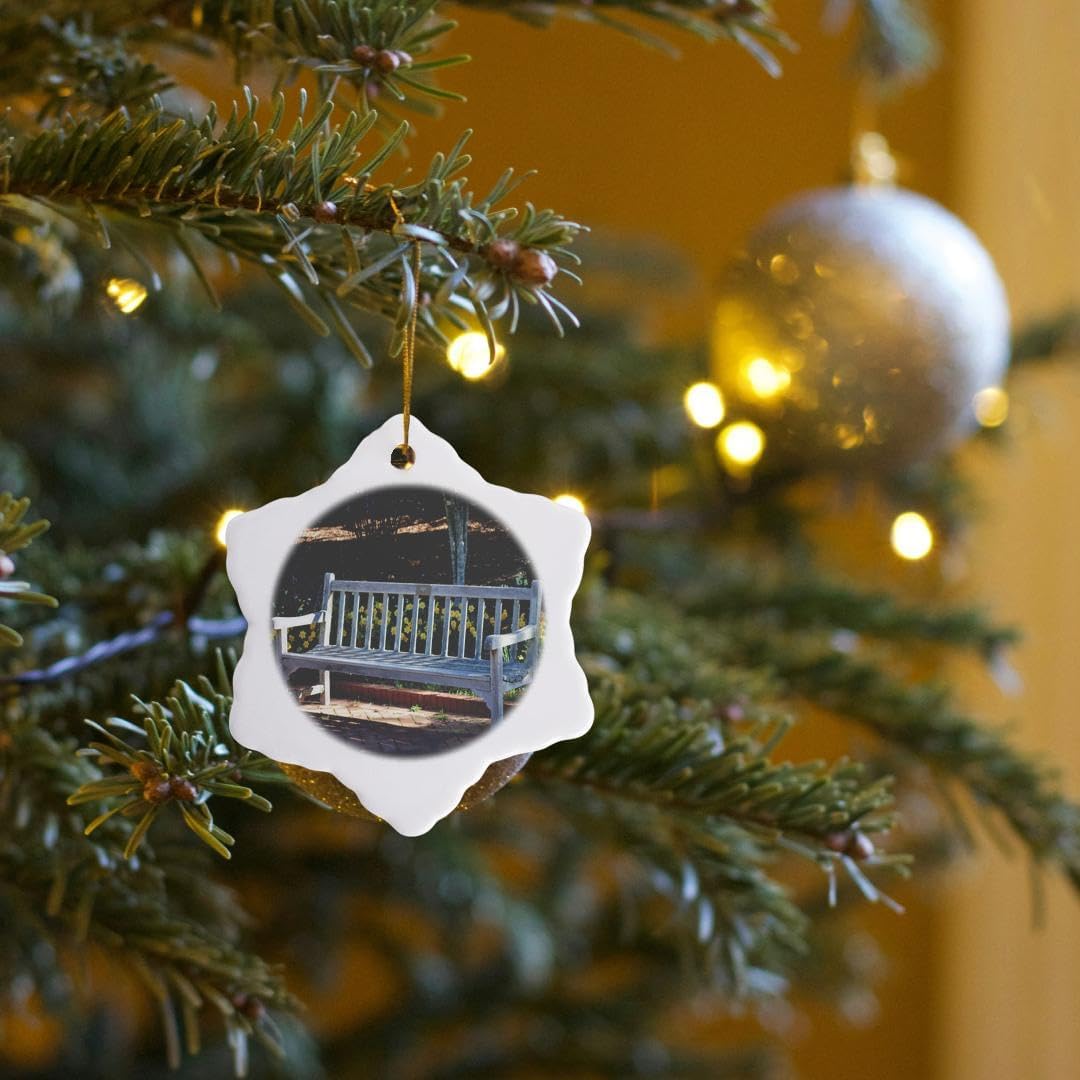 Spring Flowers Wooden Bench Snowflake Ornament - 3DRose Sit and Relax Decor