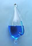 Details: Our handsome Hand Blown Weather Glass Barometer consists of a sealed glass container, which gets half filled with water, and a narrow spout open to the atmosphere. Named for Johann Wolfgang Von Goethe, who developed a simple but effective Weather Glass Barometer, this barometer accurately forecasts changes in the weather hours in advance. When the barometric air pressure is low, the water level in the spout will rise above the water level in the body. Conversely, when the air pressure is higher, the water level in the spout will drop below the water level in the body. The Glass Barometer measures 9 1/2 inches (24.1 cm) tall, 4 inches (10.2 cm) wide, 3 3/4 inches (9.5 cm) deep, and weighs 4 ounces (114 grams). The inside diameter of the hanging ring measures approximately 3/8 inch (0.95 cm).