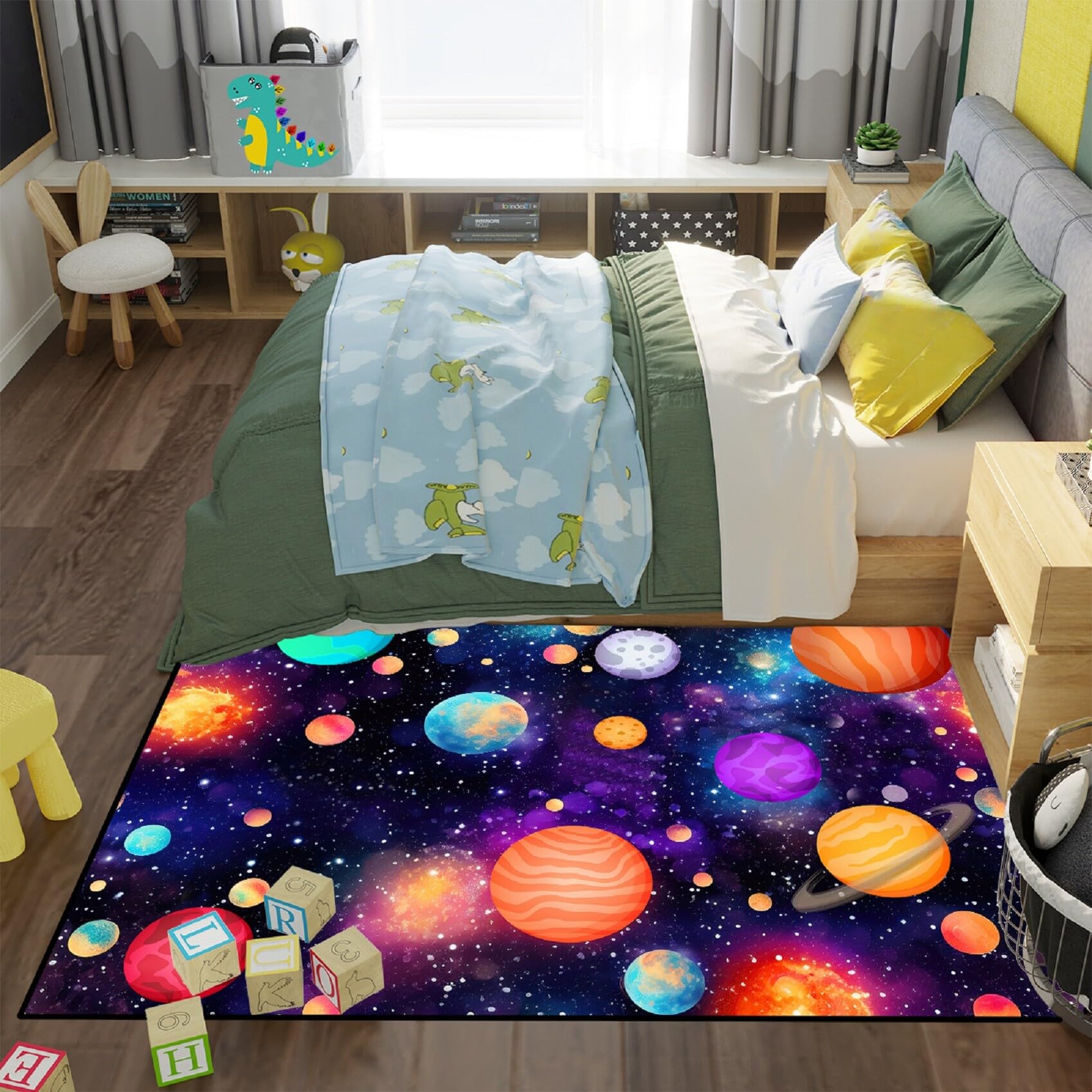 - Easy To Clean: Universe galaxy rug for kids room pattern is clear and bright, easy to clean, through you just need to clean it regularly with a vacuum cleaner. If you want to deep clean, you can wipe it with a damp cloth or put it in the washing machine for gentle cleaning!