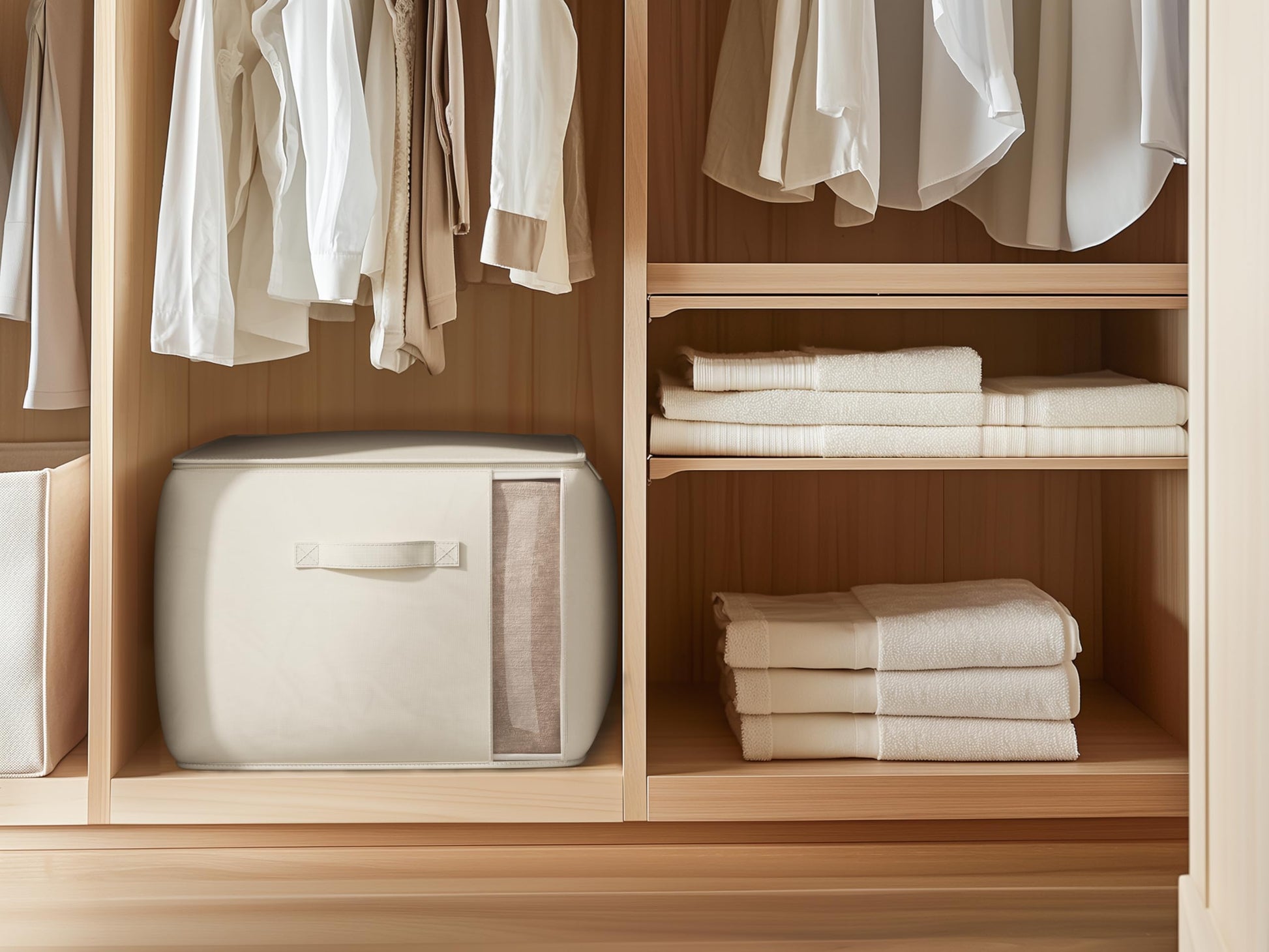- 【Efficient Storage Solution】Designed for maximum space-saving, these closet organizers are equipped with reinforced handles on three sides for easy carrying and moving. They also fold flat when not in use, making storage effortless and space-efficient