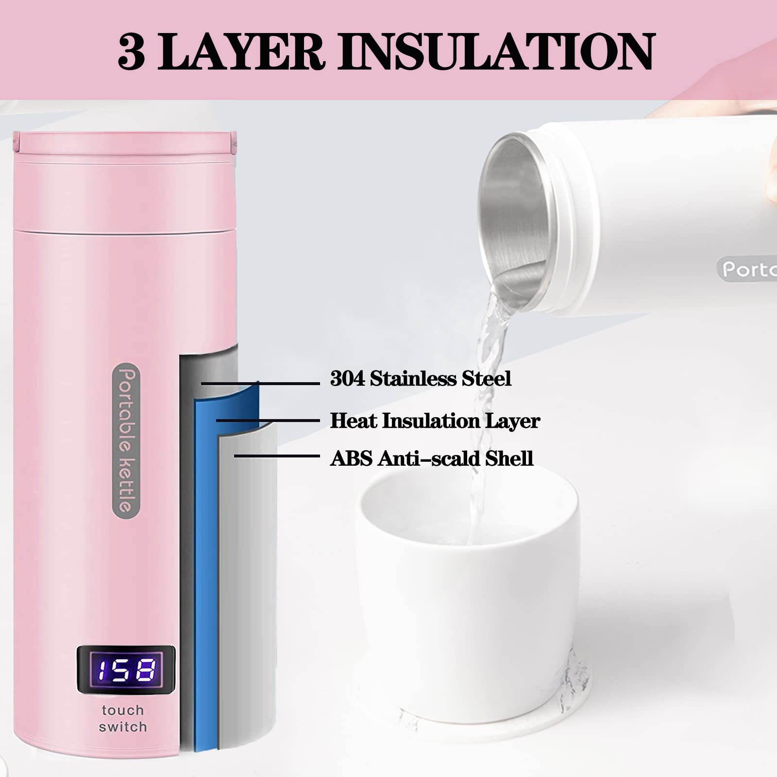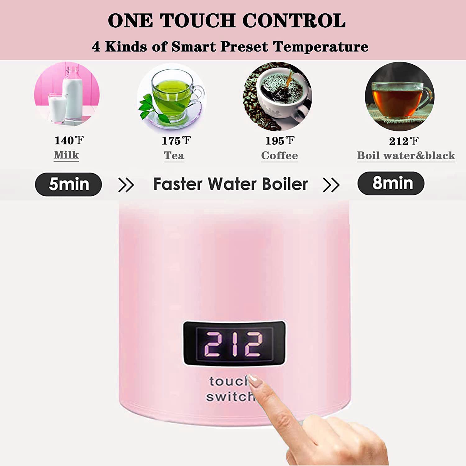 - 【Mini Travel Kettle with 4 Temperature Preset 】The intelligent electric kettle have 4 temperature modes, you can set the temperature according to your needs,like 212℉ for boiling, 195°F for coffee, 175°F for tea, 140°F for milk powder. It inherits all the features of kettles, thermos and cups, meet different needs, is a perfect gift for travel, office and student dormitory.
