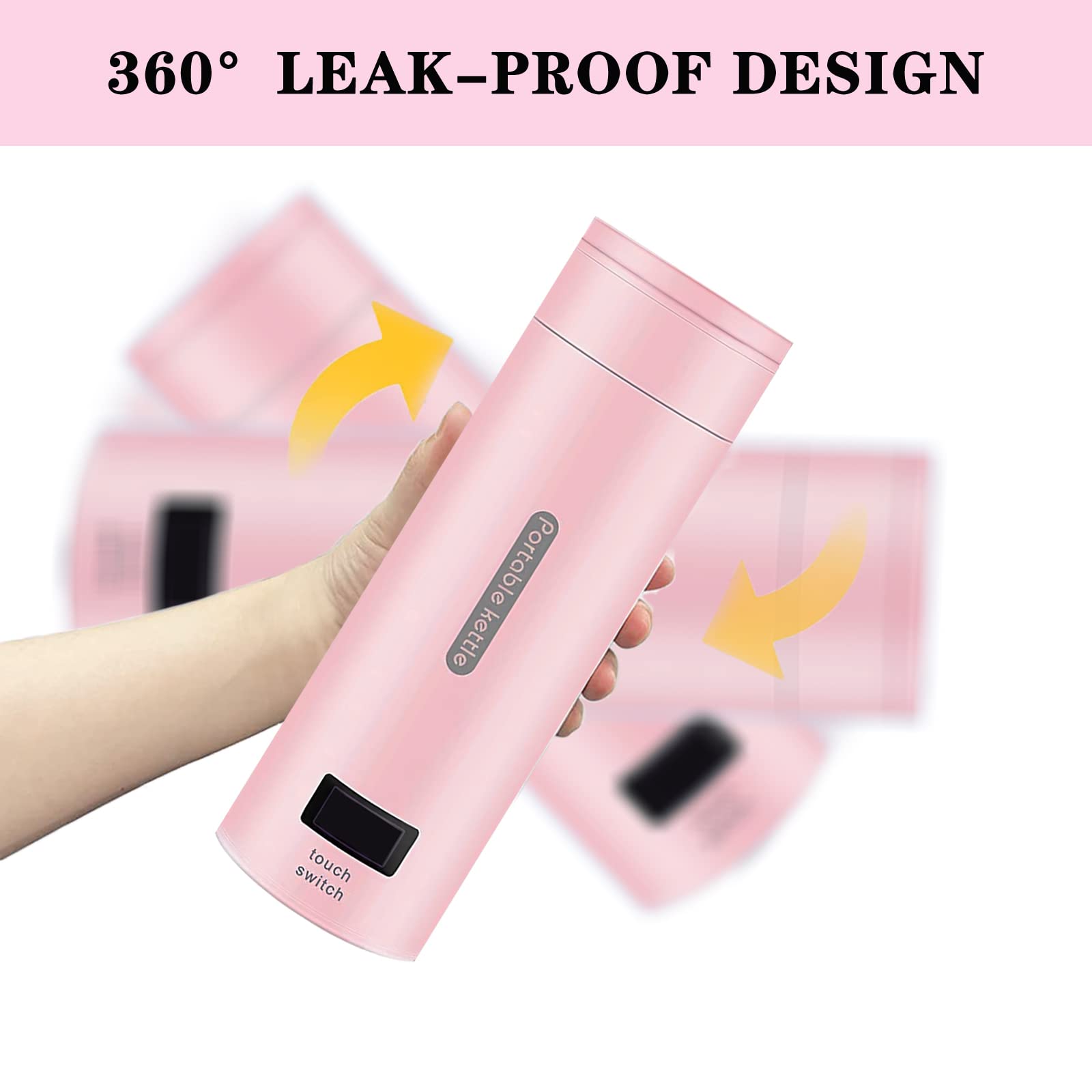 Travel Electric Kettle Small Portable Electric Kettle, 380ML Mini Tea Kettle with 4 Variable Presets, 304 Stainless Steel Travel Water Boiler for Coffee Tea, Auto Shut-Off & Boil Dry Protection (Pink)