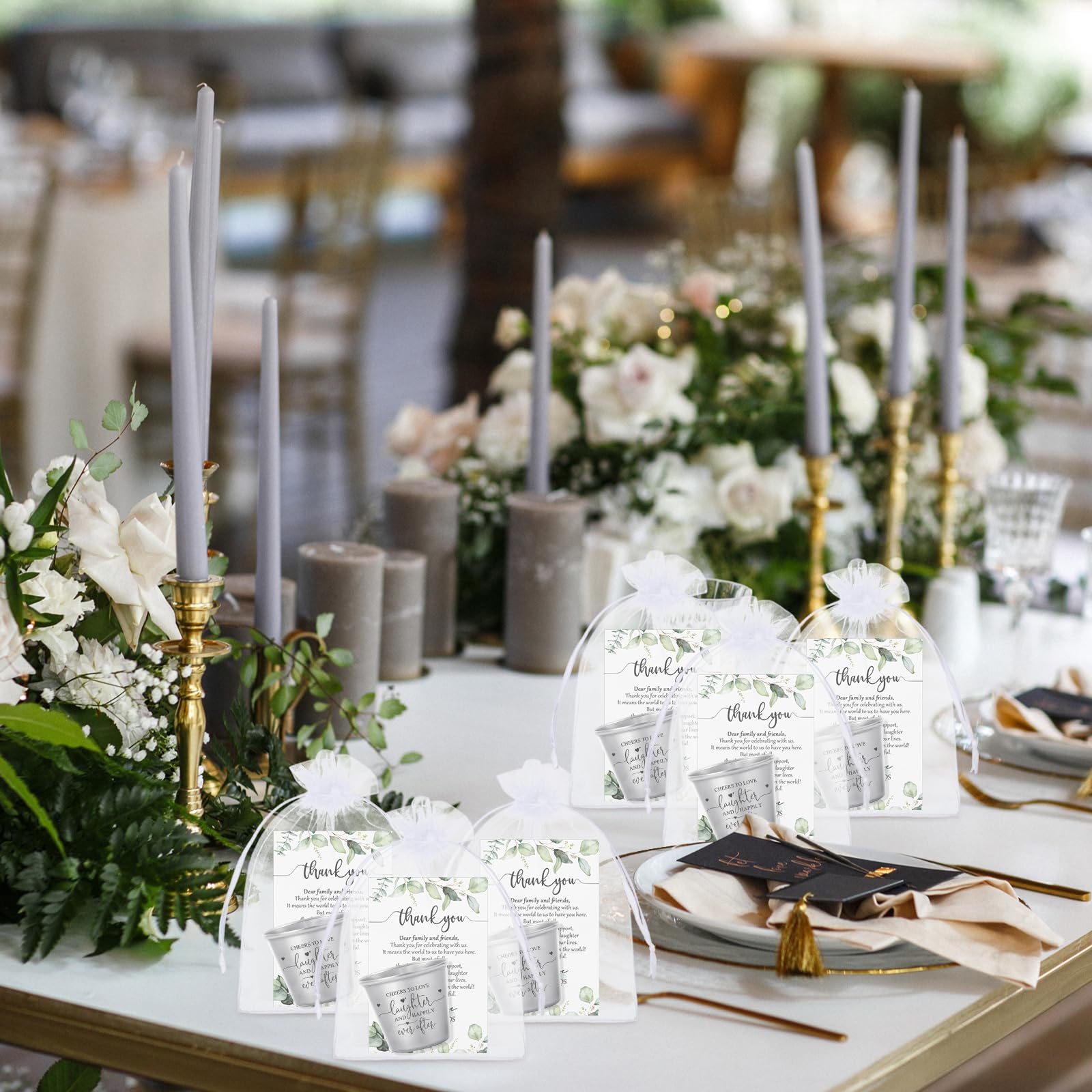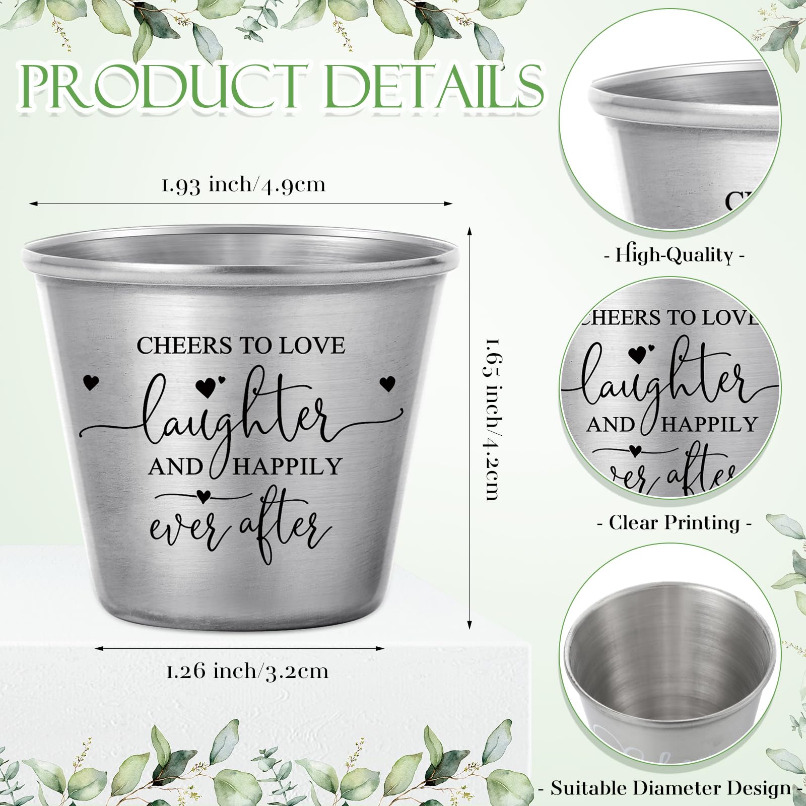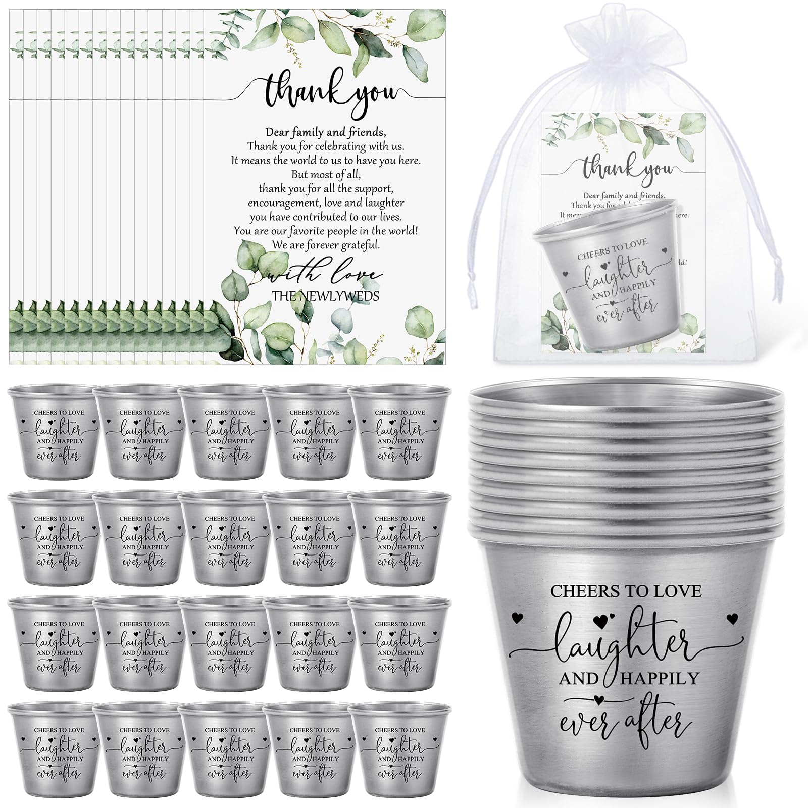 - Generous Packaging: the wedding favors set includes 100 stainless steel shot glasses, 100 thank you cards, and 100 organza bags in the package; This ensures you'll have enough gifts to satisfy your needs