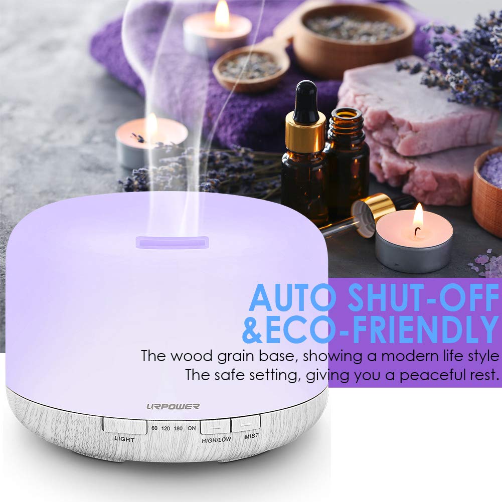 URPOWER 500ml Essential Oil Diffuser, Aromatherapy Diffusers for Essential Oils with Adjustable Mist Mode/4 Timer Settings Large Room Cool Mist Humidifier Air Diffuser for Home Office Study Yoga Spa