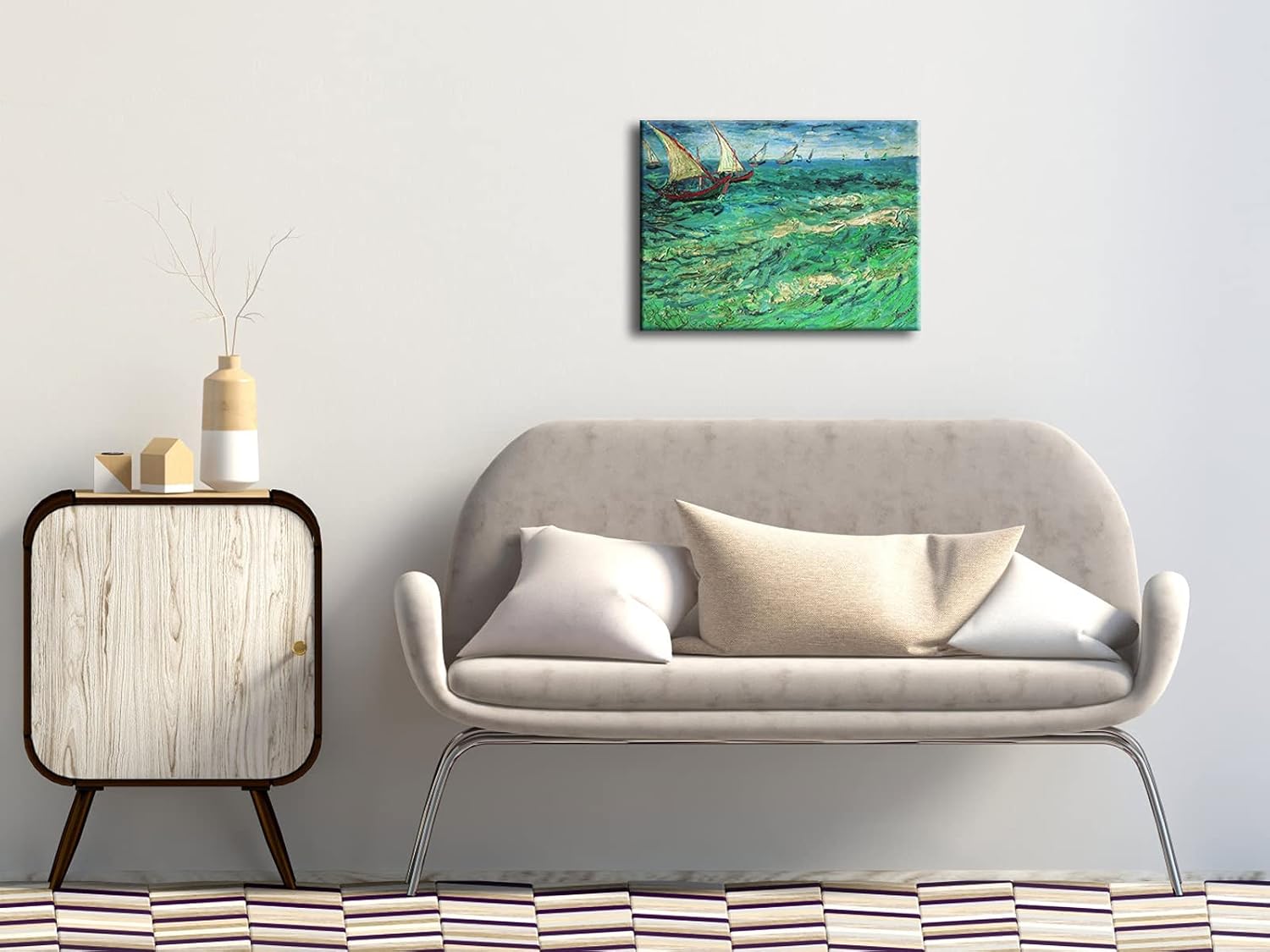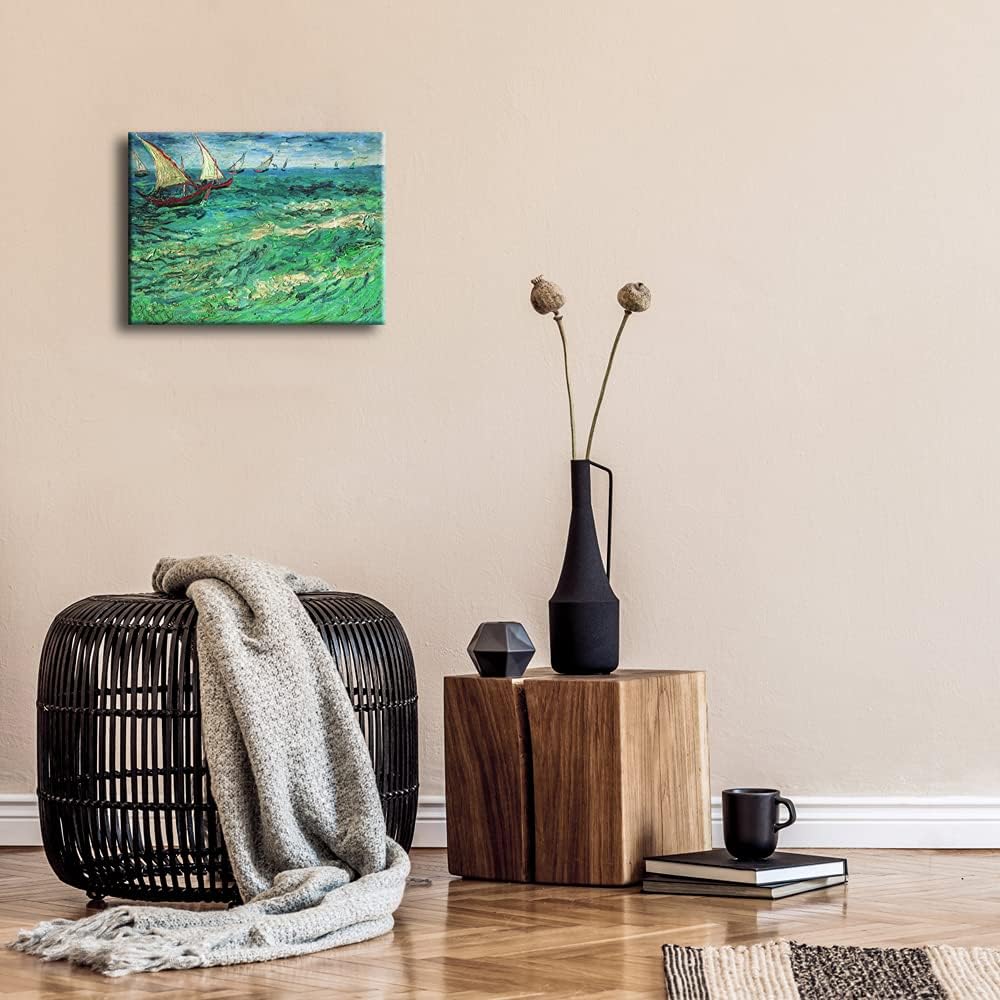Van Gogh Sailing Boats Canvas Print - Framed Seascape Wall Art for Bedroom Decor