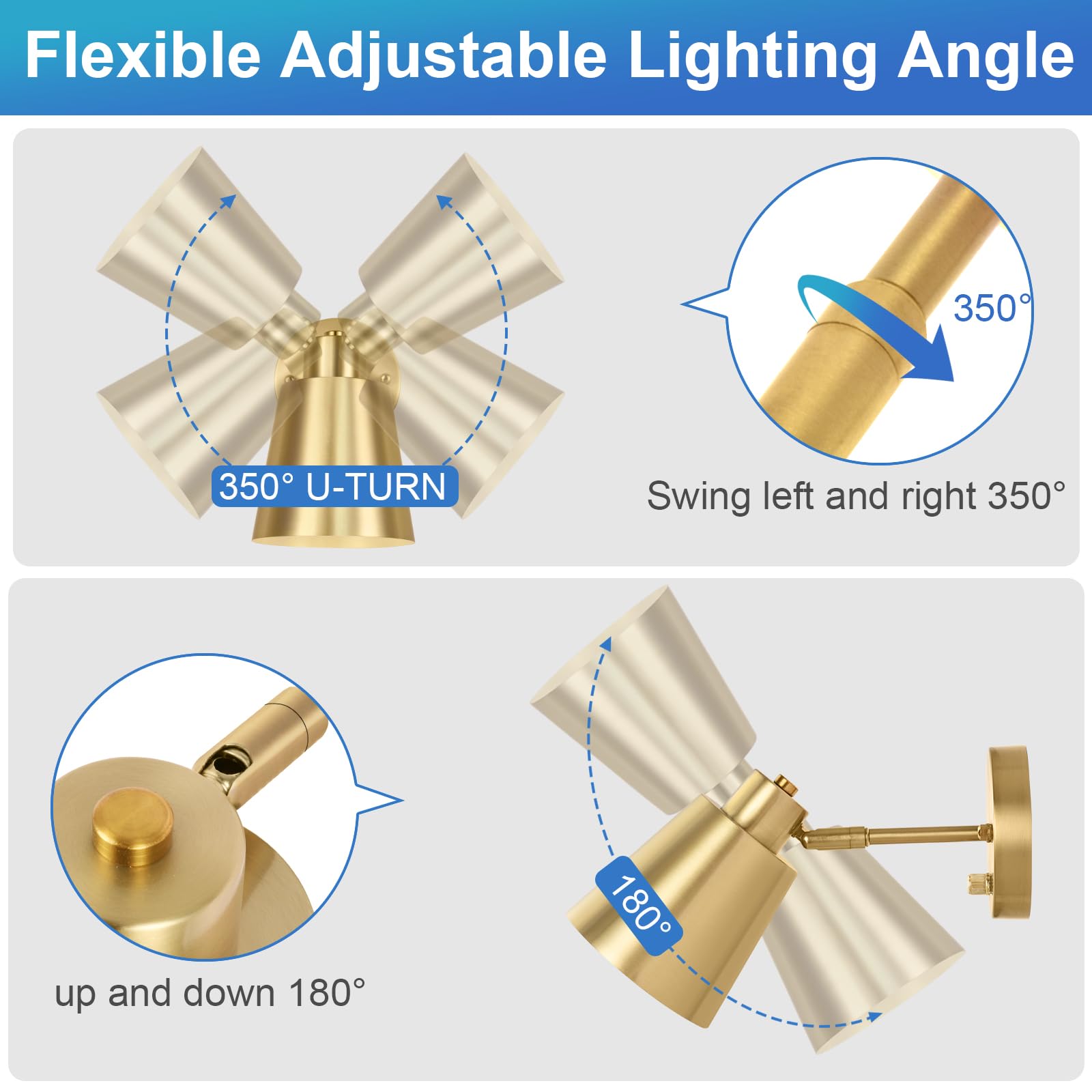 - Flexible Adjustable Lighting Angle: The joint connect the arm and lamp head can be adjusted up and down 180 degrees and swing left and right 350 degrees, so you can freely adjust the lighting angle to meet your lighting needs.
