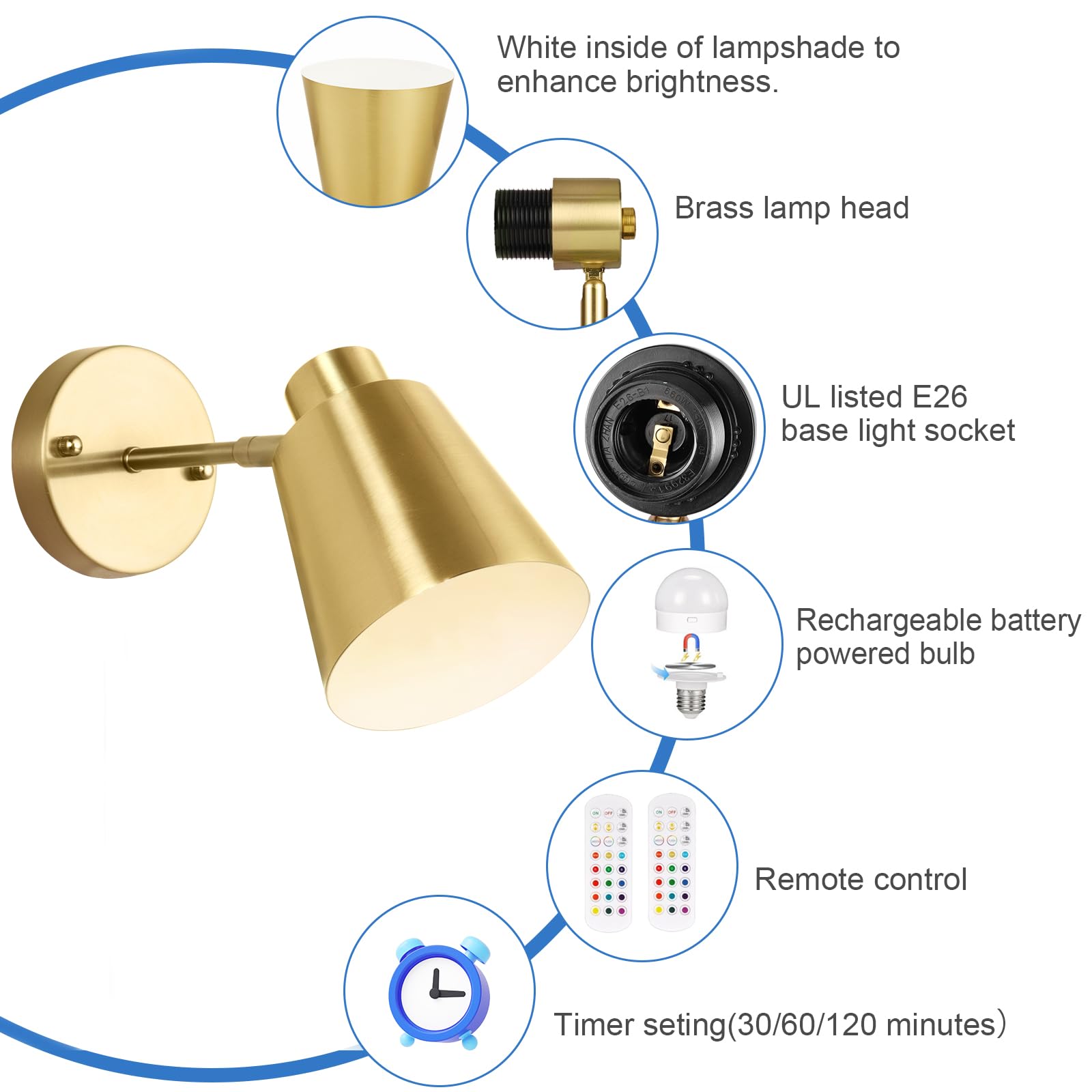 - Easy to Install & Wireless: No wiring required; just mount the wall light on the wall surface with screws, then install the included battery-powered bulb. Package Include: wall sconce + rechargeable bulb + remote control + Type-C charger cord + mounting hardware + installation guide.