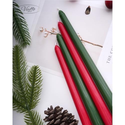 - Festive Red and Green Taper Candles for Holiday D?cor£ºWith a smooth finish and tall, elegant form, these red and green taper candles bring a classic seasonal glow to your table d?cor. Their vibrant tones and flickering flame recall the warmth of Christmas lights and cozy gatherings.