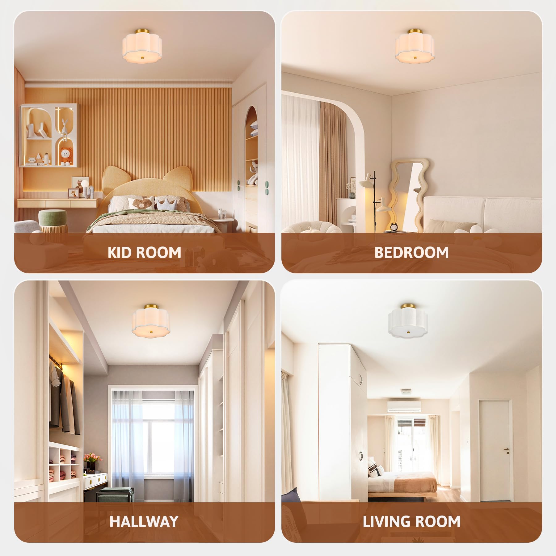 - Elegant Modern Light: Vonluce's flush mount ceiling light combines a captivating flower-shaped shade with an antique brass canopy, adding timeless charm to any interior style, from contemporary minimalist to Art Deco