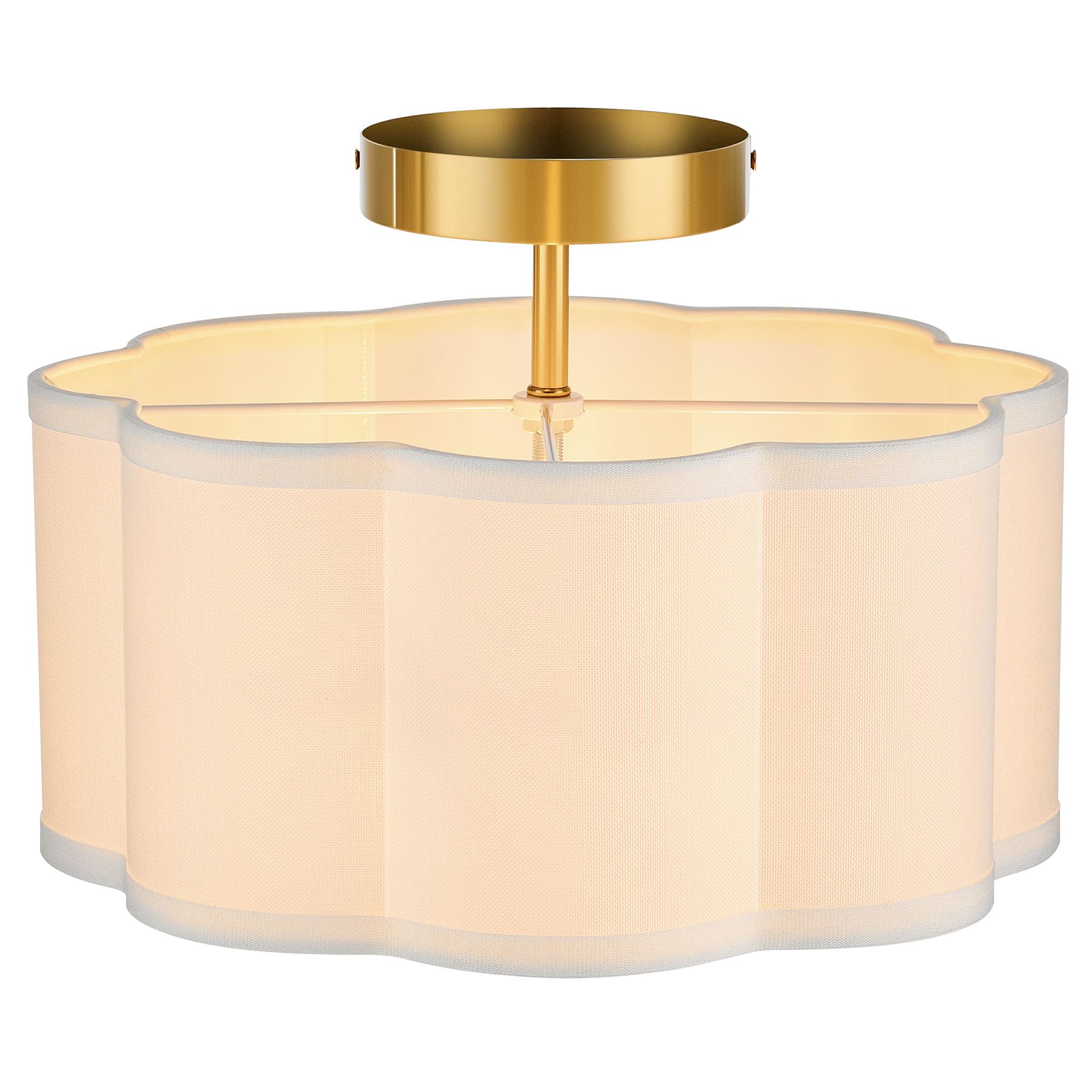 VONLUCE Semi Flush Mount Ceiling Light, 13'' Ceiling Light Fixture with Flower-Shaped Fabric Shade, 3-Light Modern Light Fixture for Bedroom Living Room Nursery Hallway, White Shade & Gold Finish